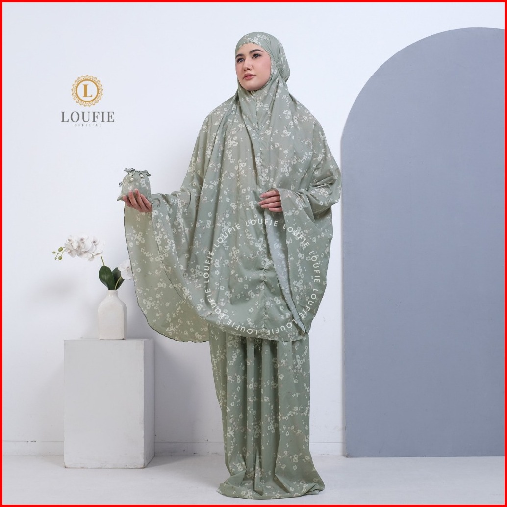 Loufie - Mukena Dewasa Traveling Mini Pouch Parasut Korea Motif Sakura Premium