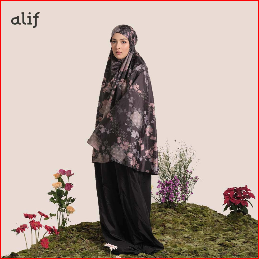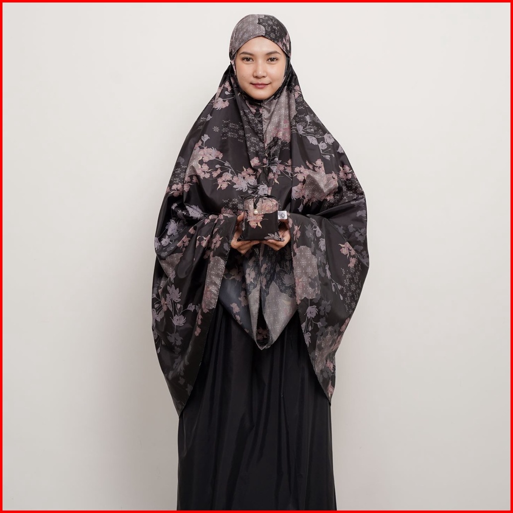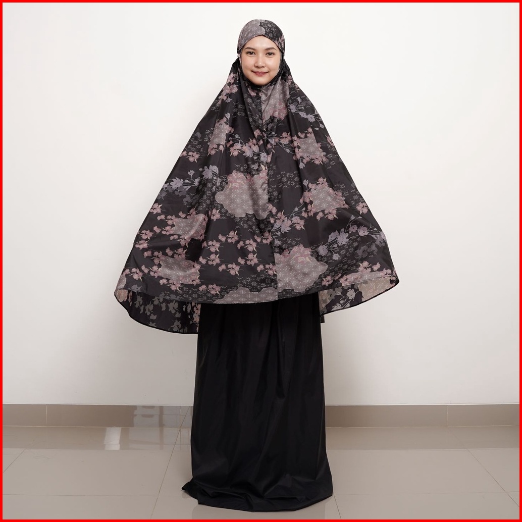 Alif Modern Wear - Mukena Mini Motif Parasut Premium Korea Travel - Daisy In Black