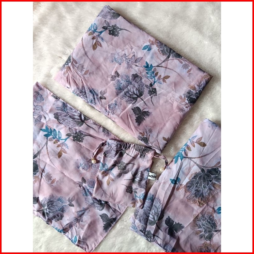 Mukena Mini Pouch Free Sejadah Motif Bunga 2in1 Bahan Parasut Korea Ukuran Dewasa