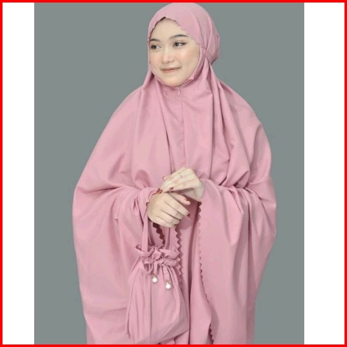 Mukena Travelling Lasercut 2in1 Kirana Dewasa Bahan Katun Mikro Tas Mini Pouch