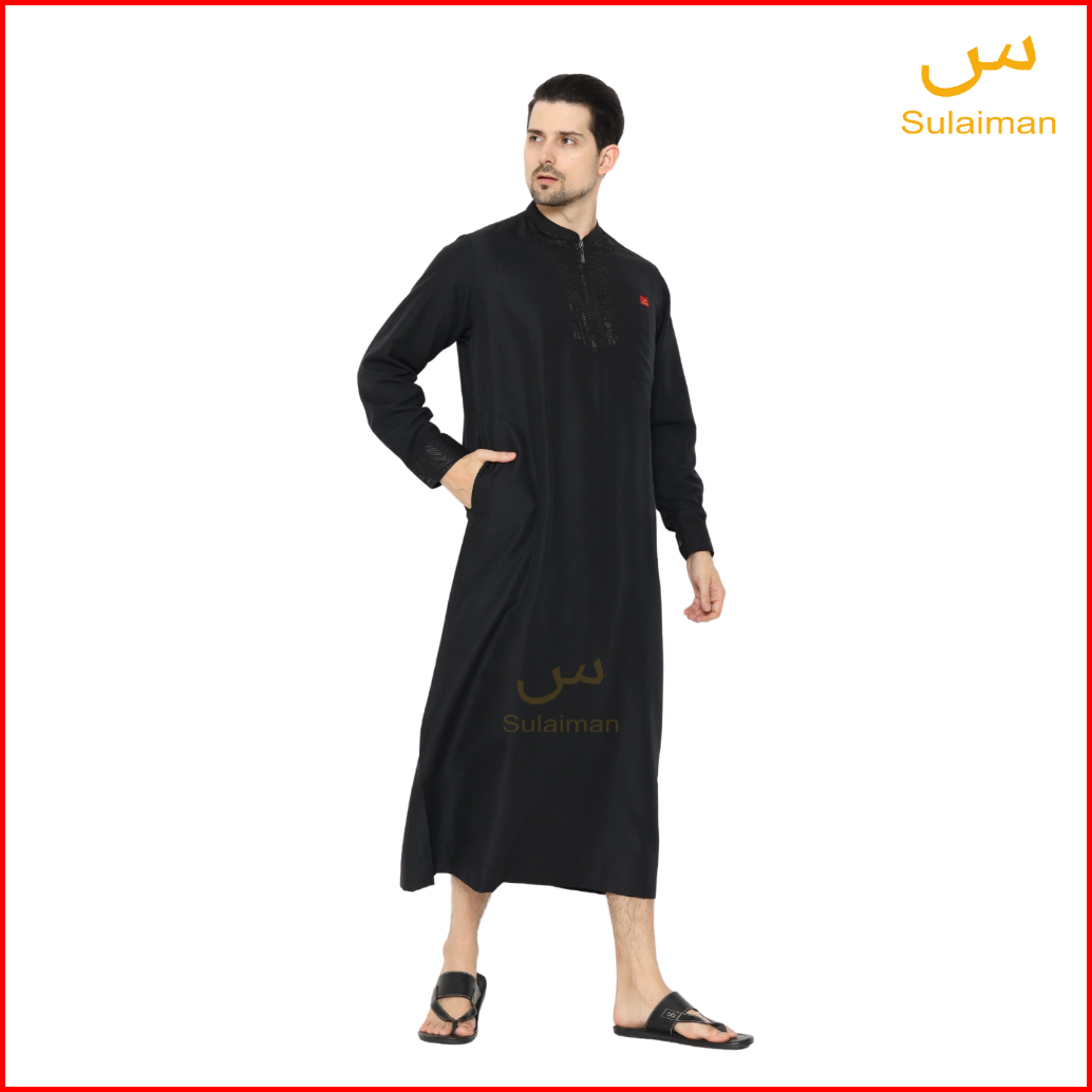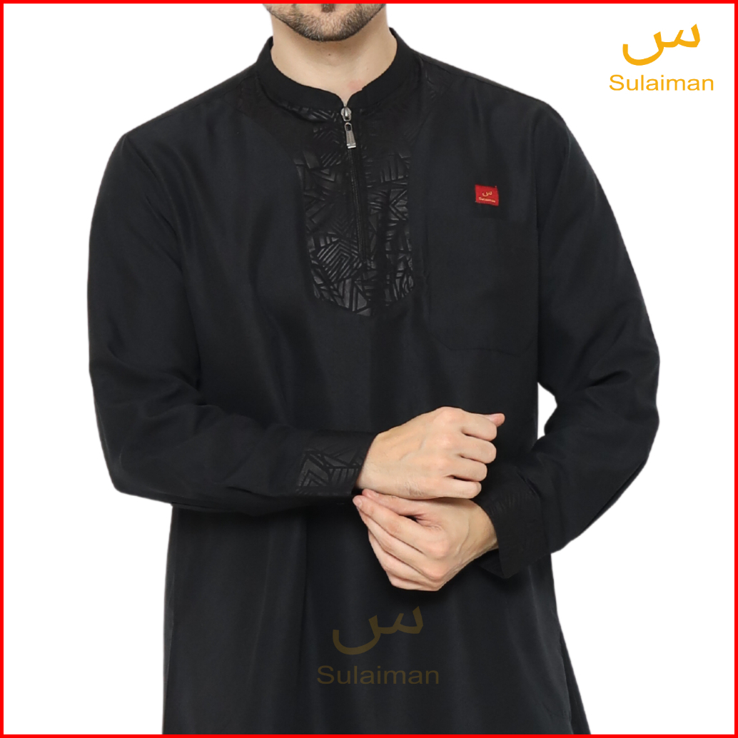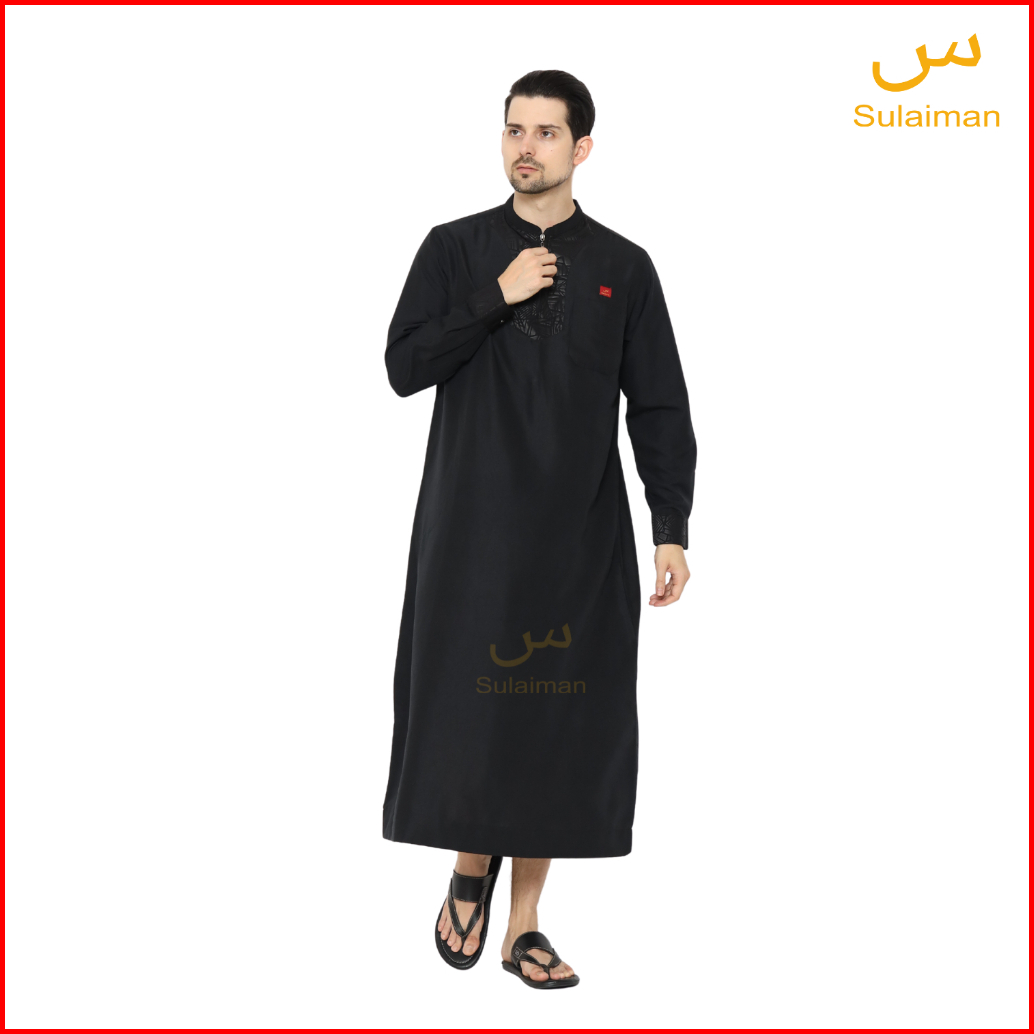 Sulaiman Moslem - Jubah Pria Muslim Dewasa Lengan Panjang Adam Hitam