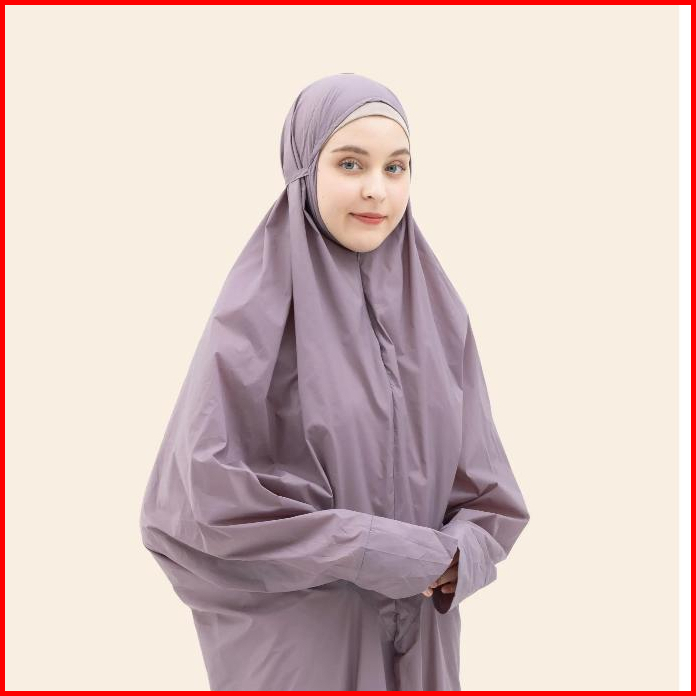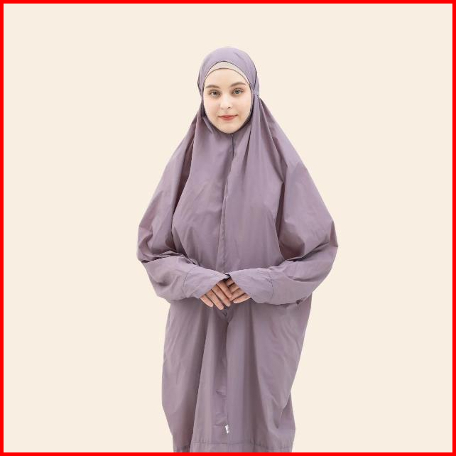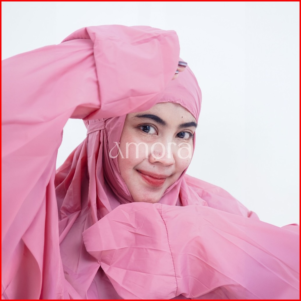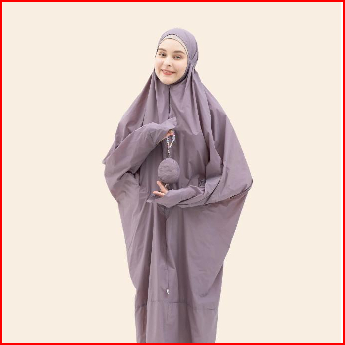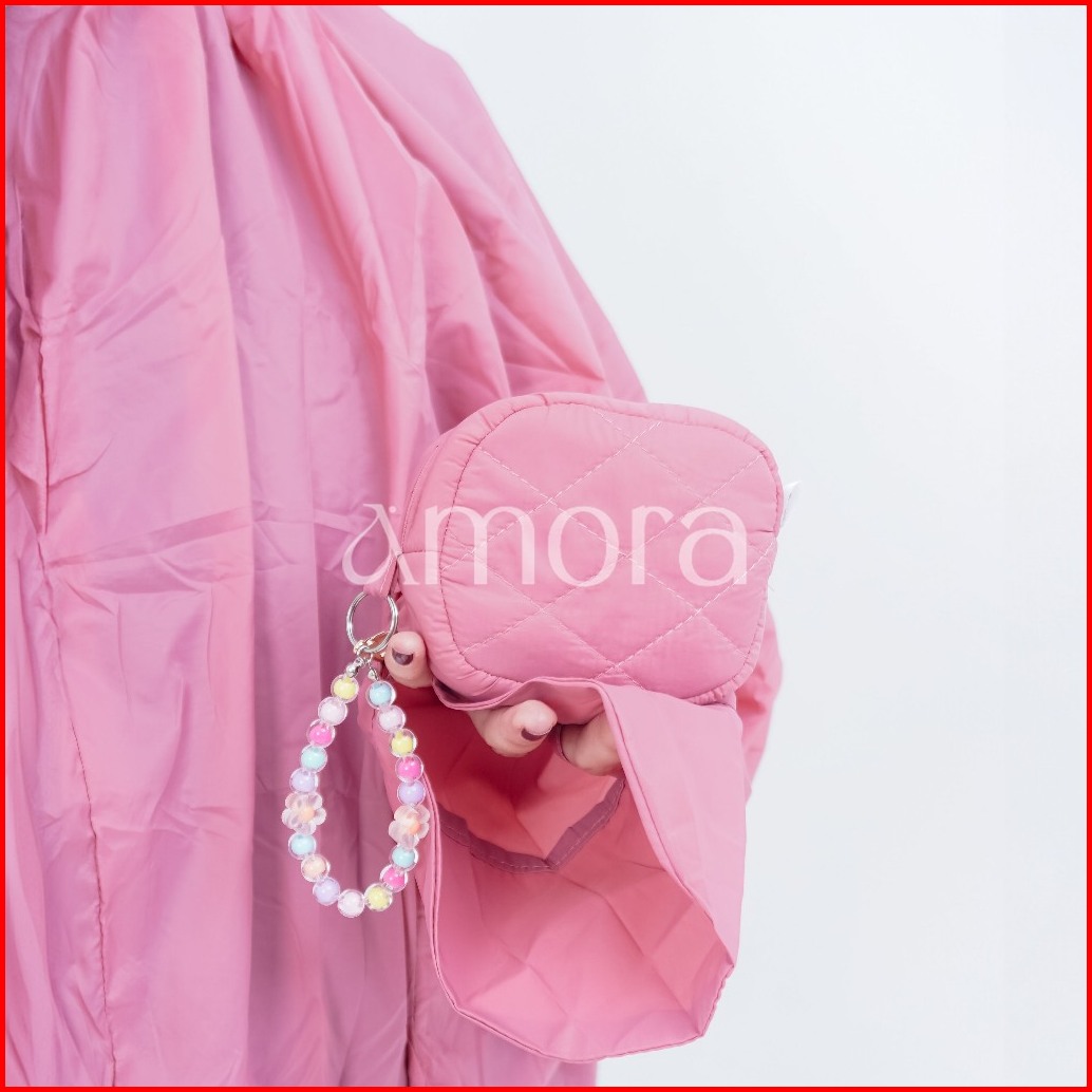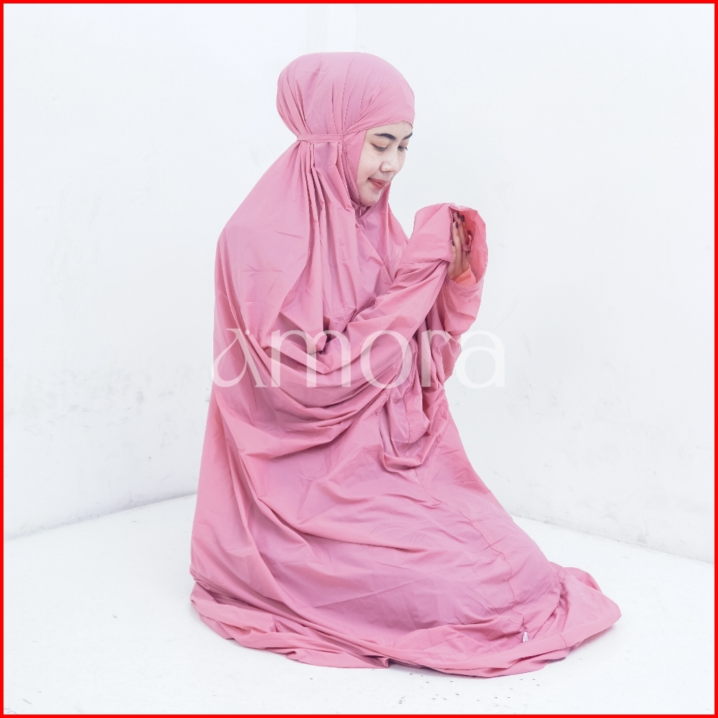 Amora - Mukena Travel Terusan Polos Parasut Korea Premium Mini Pouch 2in1 Resleting Dagu Jumbo Adem