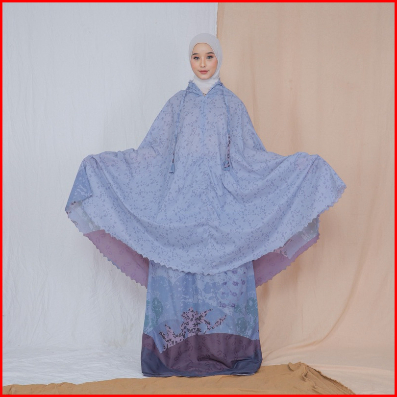 Mukena Traveling Mini Pouch Resleting 2in1 Lasercut Parasut Korea Motif