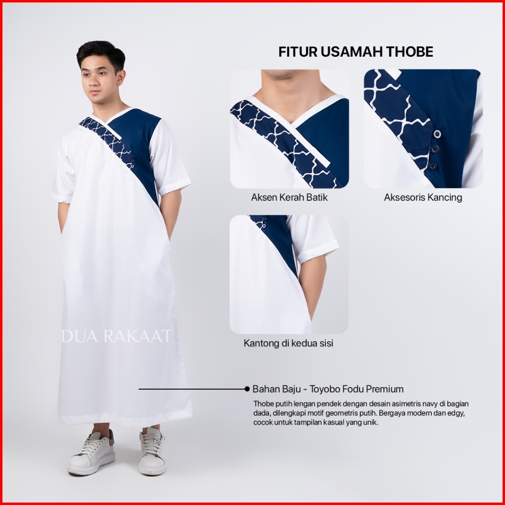 Dua Rakaat Original Usamah Thobes Gamis Jubah Abaya Pria Muslim Lebaran Warna Putih Bahan Katun