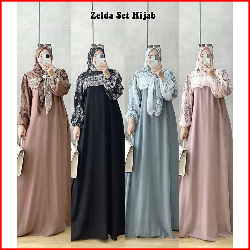 Zelda Ellena Safara Dress Gamis Crinkle Motif Premium Wanita Muslimah
