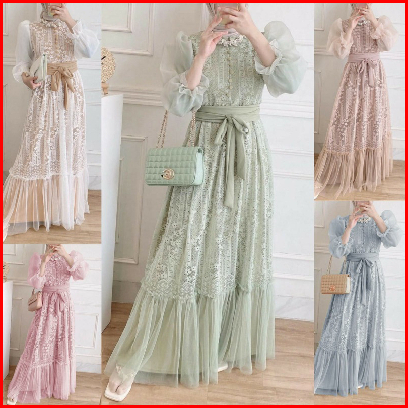 Dress Inara Brokat Dress Kondangan Wanita Fashion Muslimah Baju Gamis Dewasa Dress Muslim Kekinian
