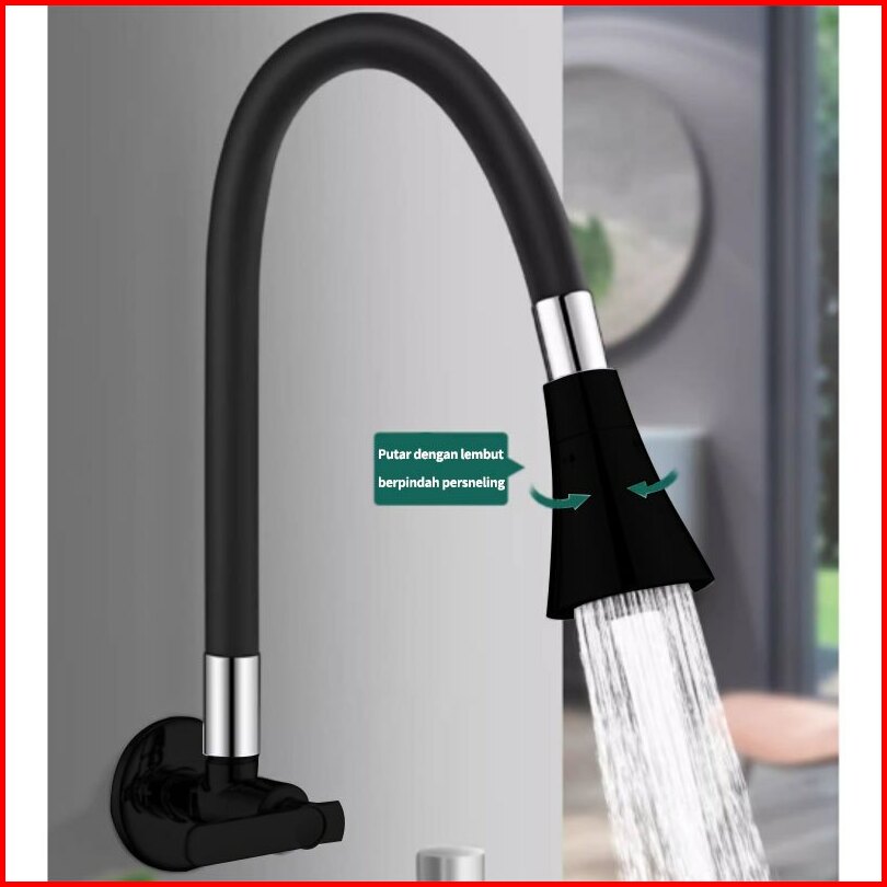 Sus 304 Kran Angsa Fleksibel 2in1 Tembok Stainless Hitam Bentuk Tanduk Keran Sink Flexible Cuci Piring Kran Dinding
