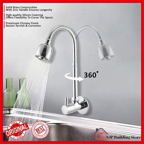 Kran Angsa Fleksibel Kepala Besar Dan Kecil Cuci Piring Rotasi 360 Stainless Dapur Wastafel