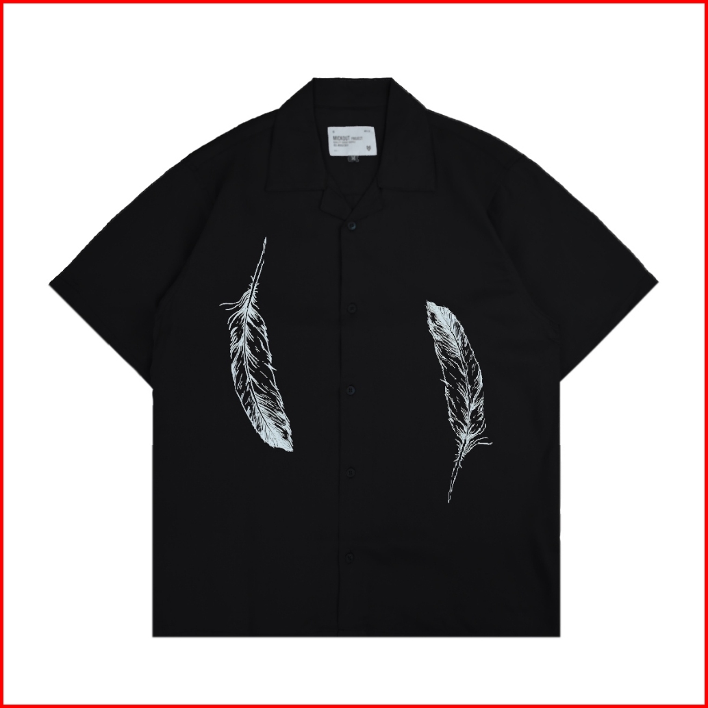 Mickout Kemeja Kasual Feathers Hitam