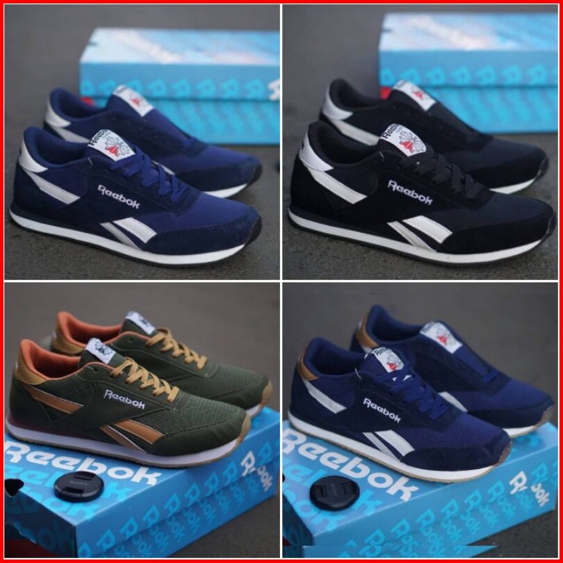 Rebok hitam sol hitm, Rebok navy sol hitm, Rebok ijo lumut, Rebok navy sol gum, Rebok putih sol gum