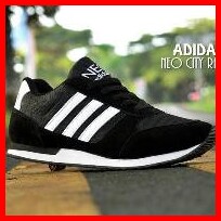 Sepatu Pria Adidas Neo City Racer Hitam Putih Kets Casual Olahraga
