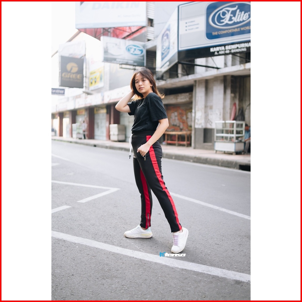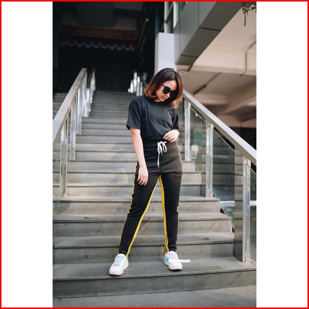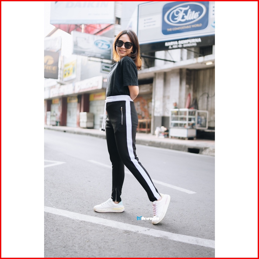 Celana Jogger Pants Hypebeast Sweatpants Trackpants Hype Streetwear Black White Zipper Double List