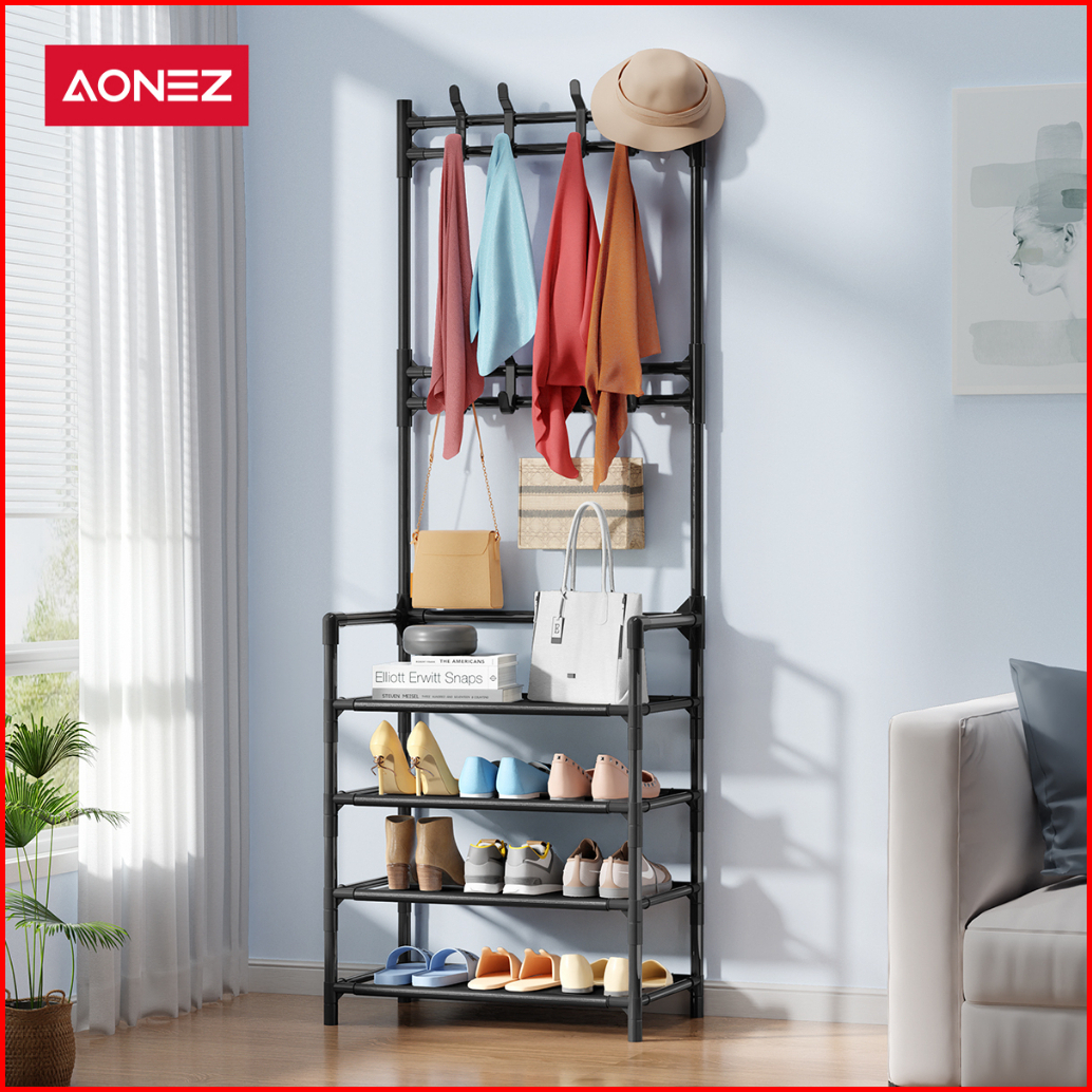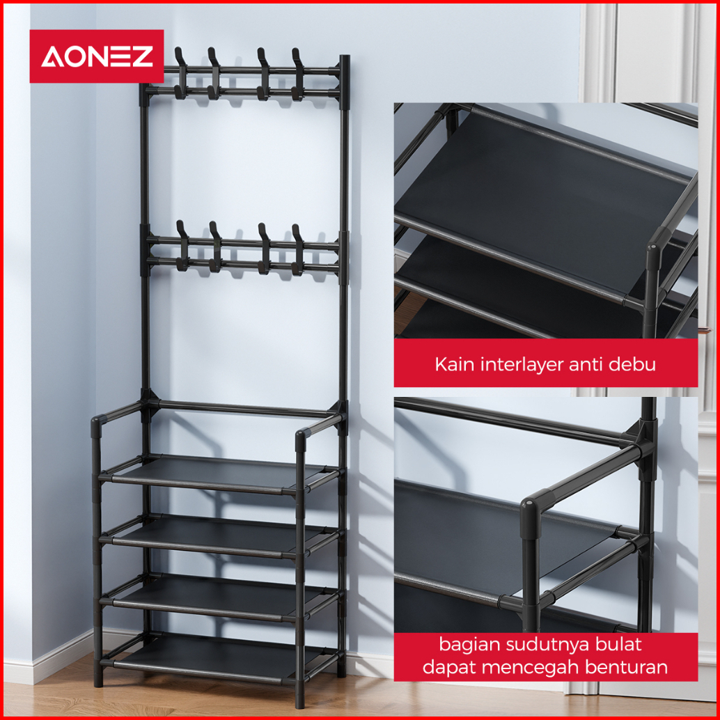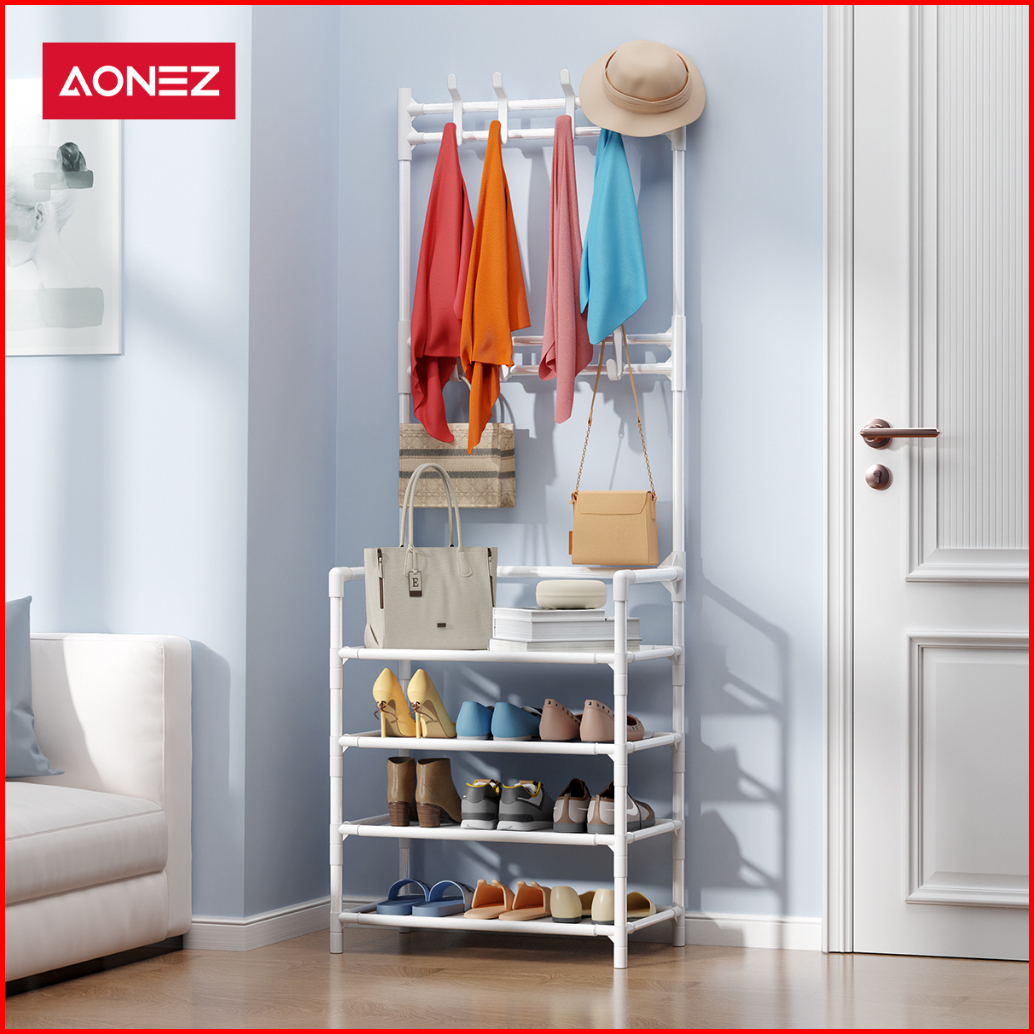 Aonez Rak Gantungan Baju Stand Hanger Jemuran Rak Penyimpanan Tempat Tas Topi Sepatu