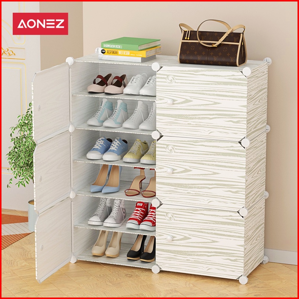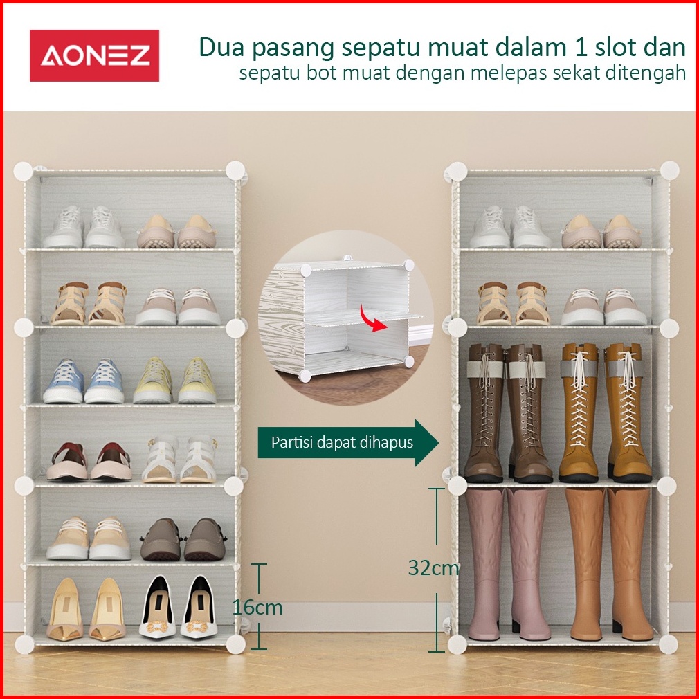 Aonez Rak Sepatu Motif Kayu 2 Kolom 6 Susun Tempat Sepatu Anti Debu Multifungsi Serbaguna Kotak Sepatu Portable Dengan T