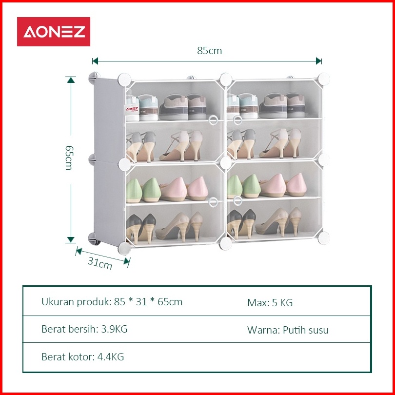 Aonez Rak Sepatu Anti Debu 2 Kolom 8layer Portable Serbaguna Kotak Sepatu Portable