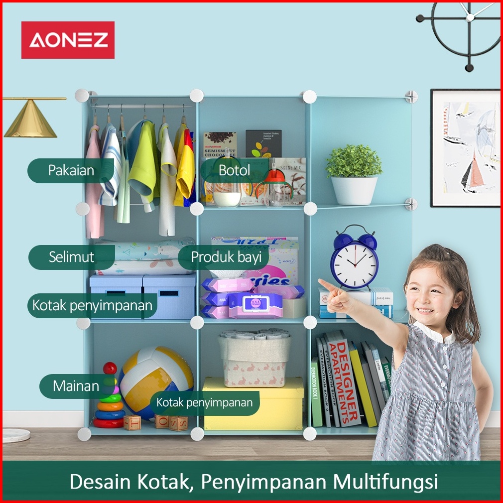 Aonez Lemari Pakaian Plastik Lemari Multifungsi Serbaguna Lemari Susun 1 Gantungan 8 Pintu Minimalism Gantungan Baju
