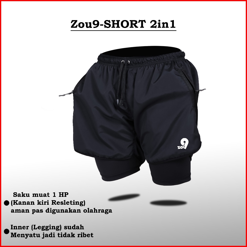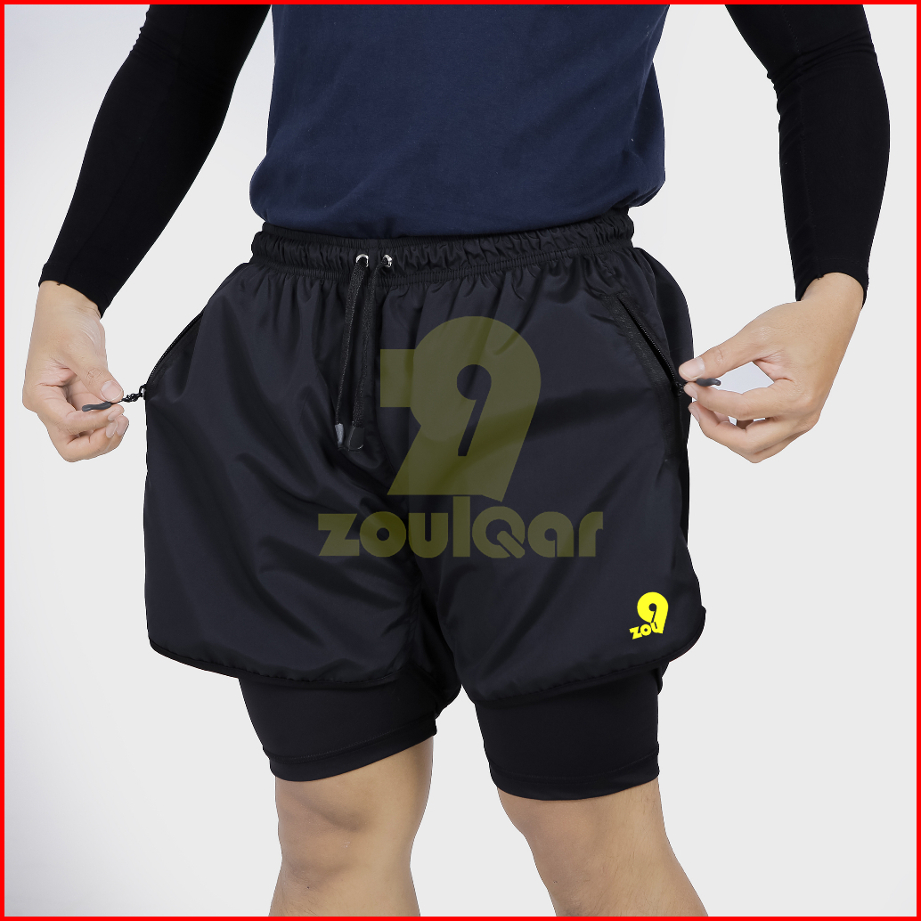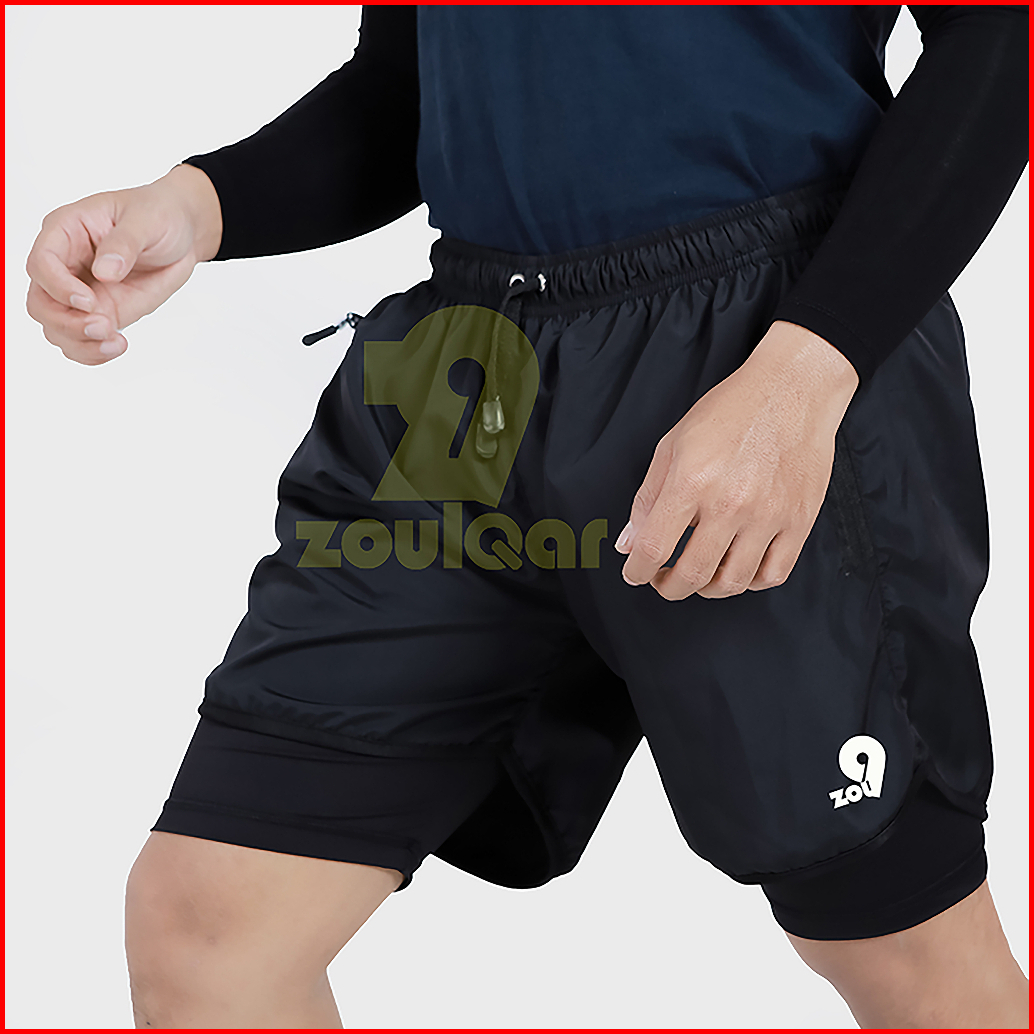 Zou9 Celana Pendek Running Pria Olahraga 2 In 1 Kolor Parasut Legging Gym Futsal