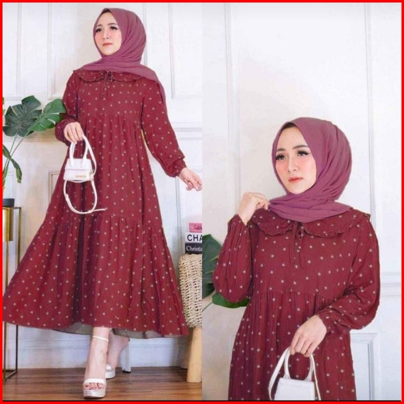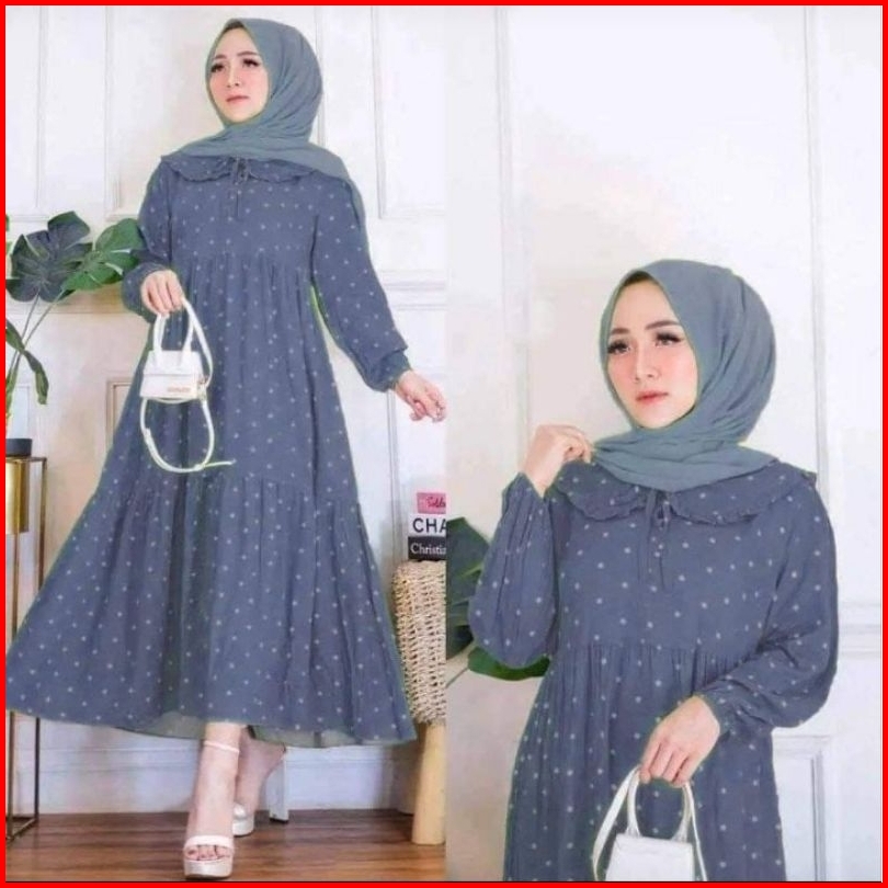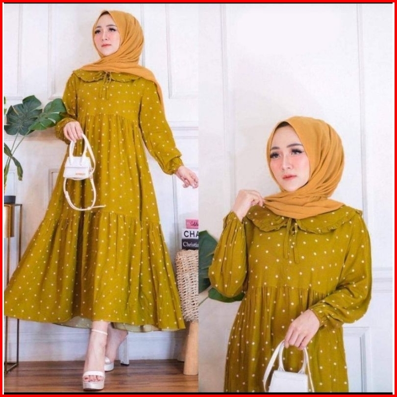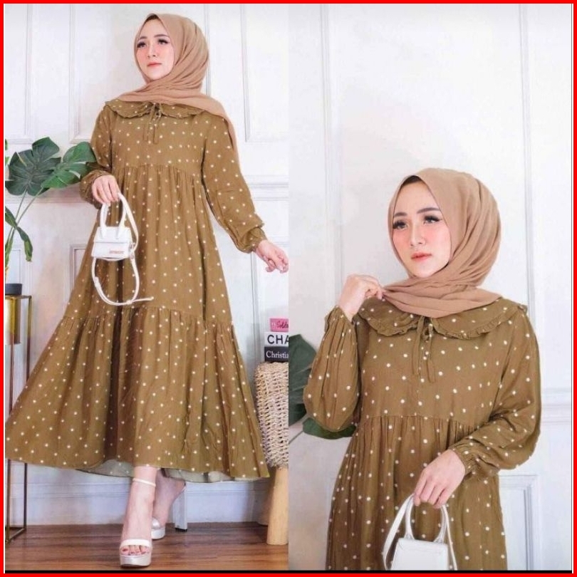 Dress Midi Motif Polkadot Midi Dress Rayon Premium Ternyaman