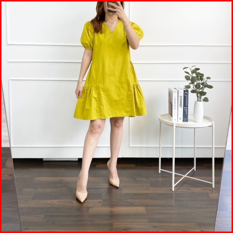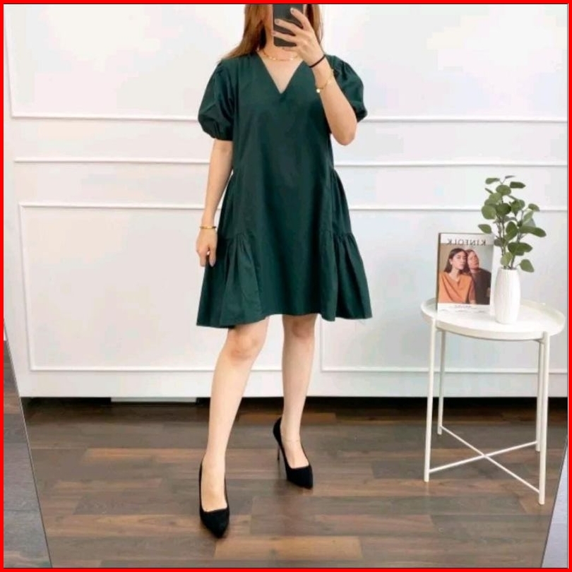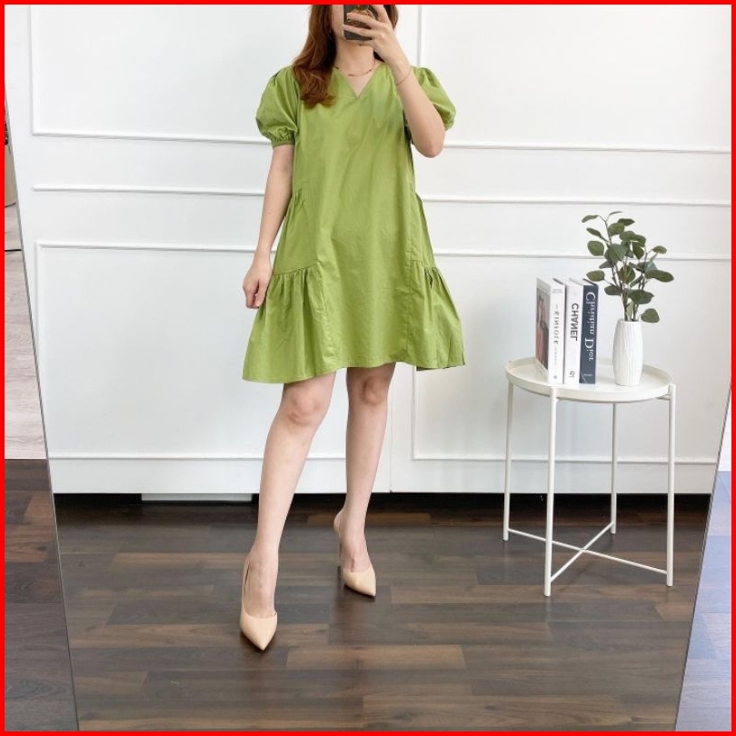 Z Ra Rumple Dress Wanita Bahan Cotton Poplin