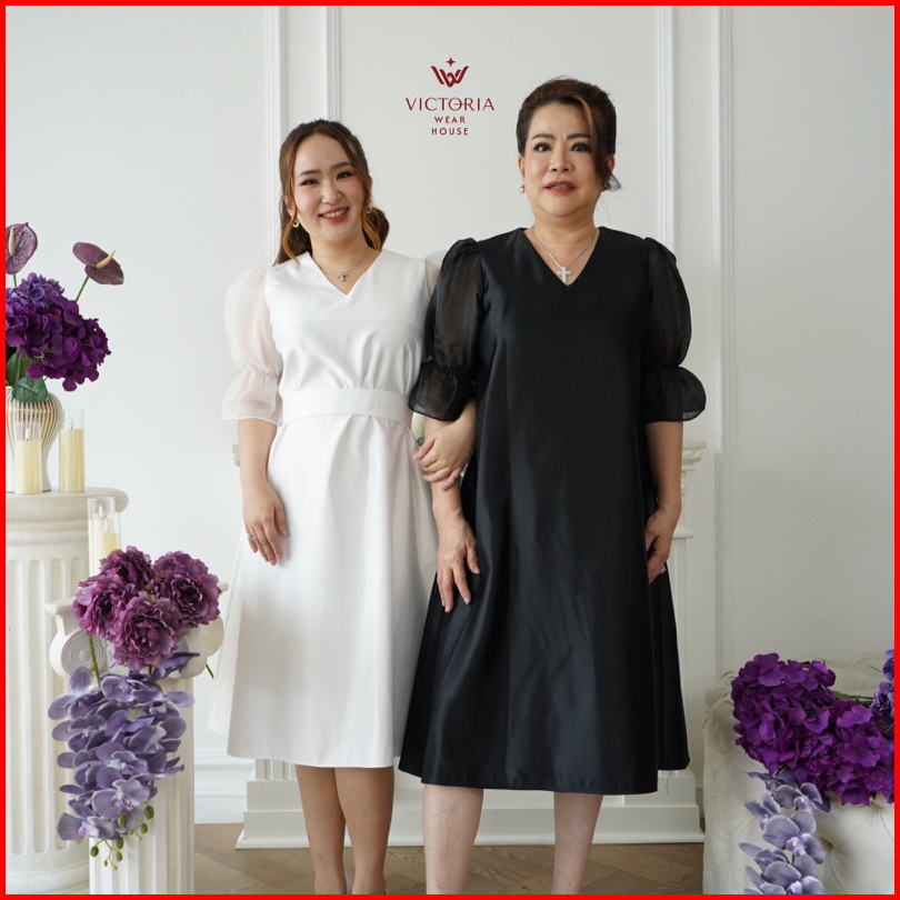 Bea Dress Midi Vneck Lengan Balon A Line Bumil Friendly Dres Terusan Gaun Pesta Wanita