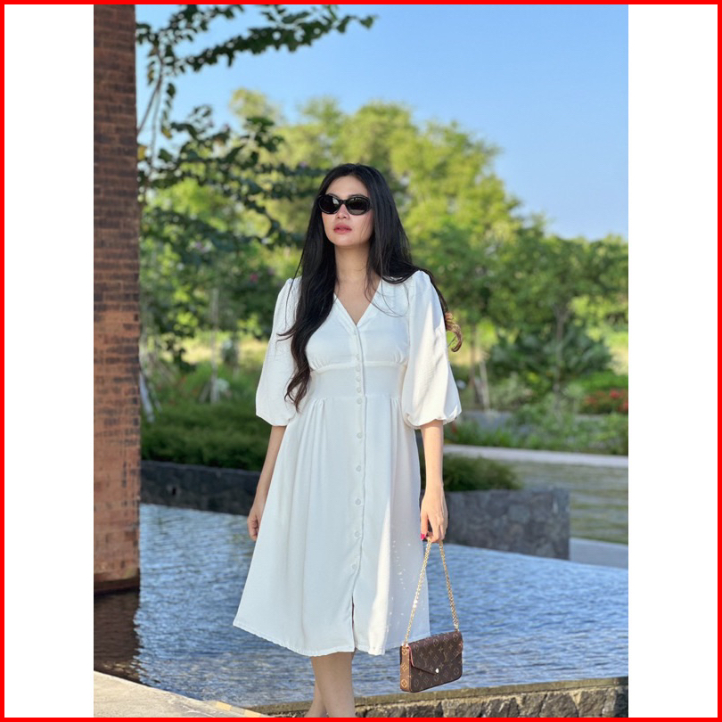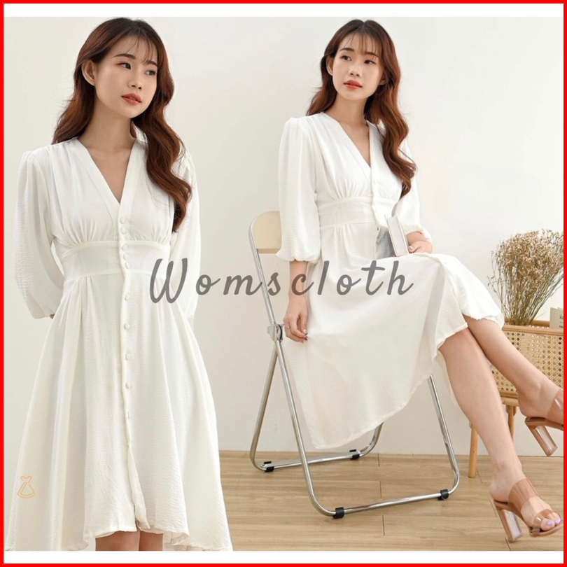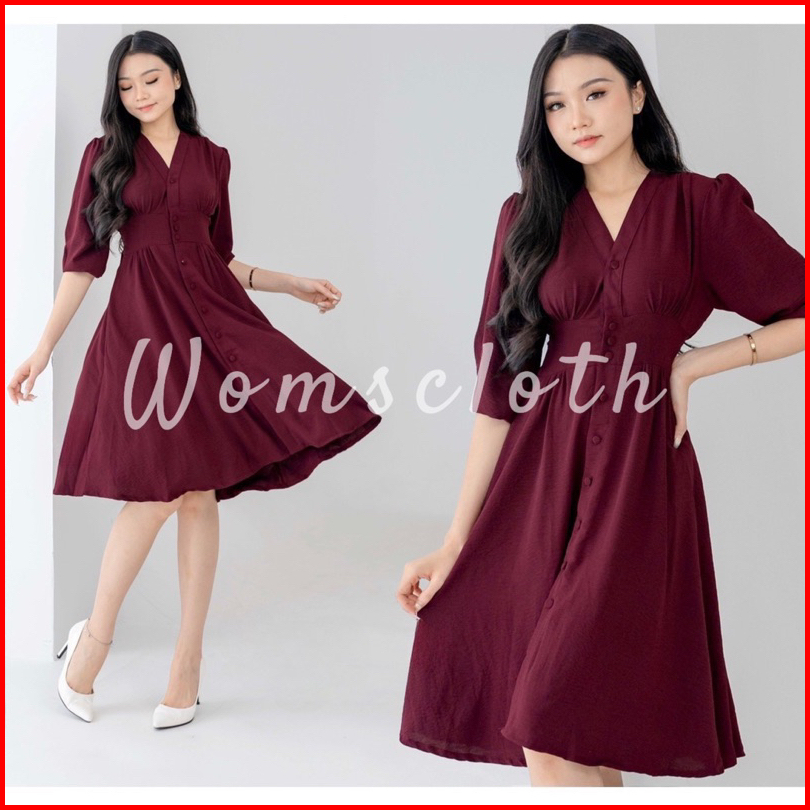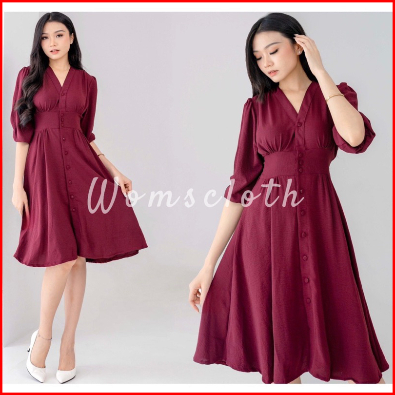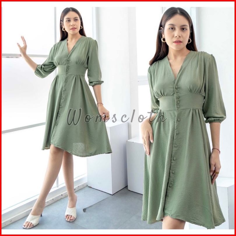 Dress Crinkle Midi Busui Fredly Premium Casual Korean Look - Dress Natal Korean Style - Dress Vintage - Dress Pesta Mura