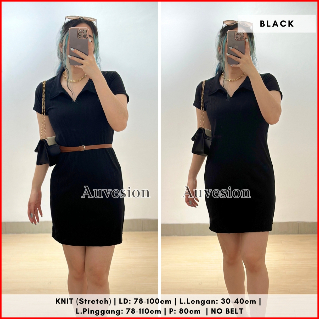 4321 Mimi Vee Knit Mini Dress Kerah Bodycon