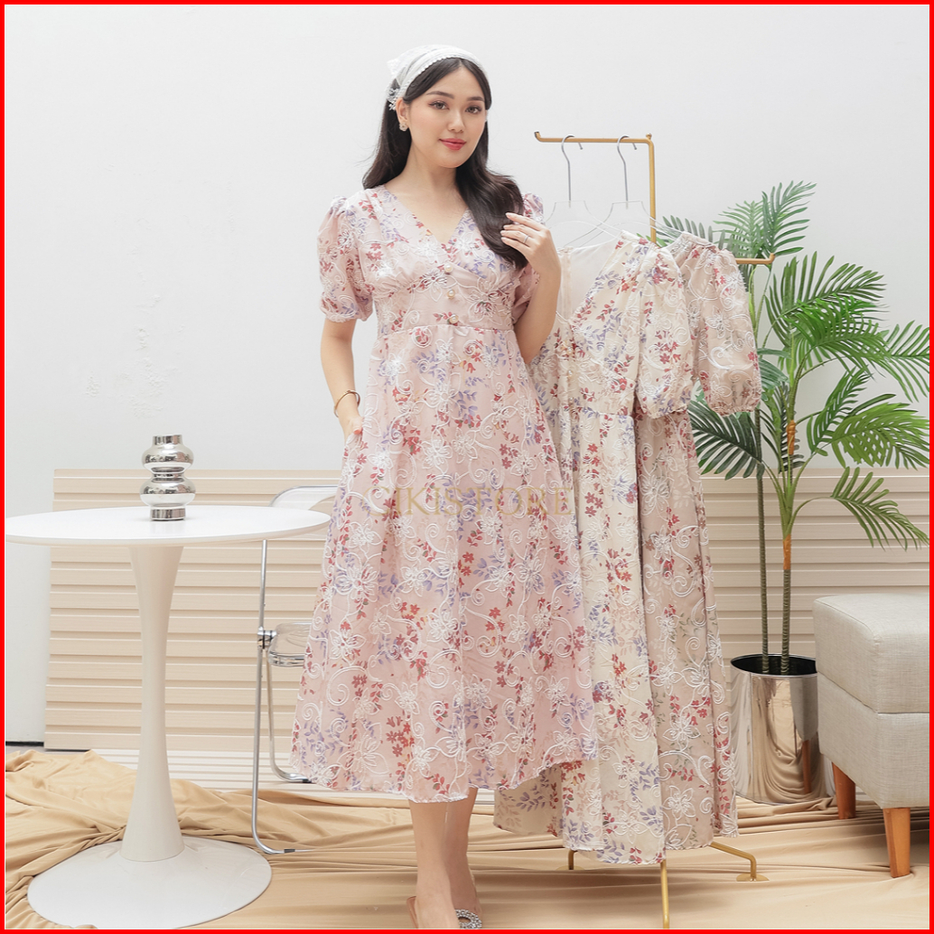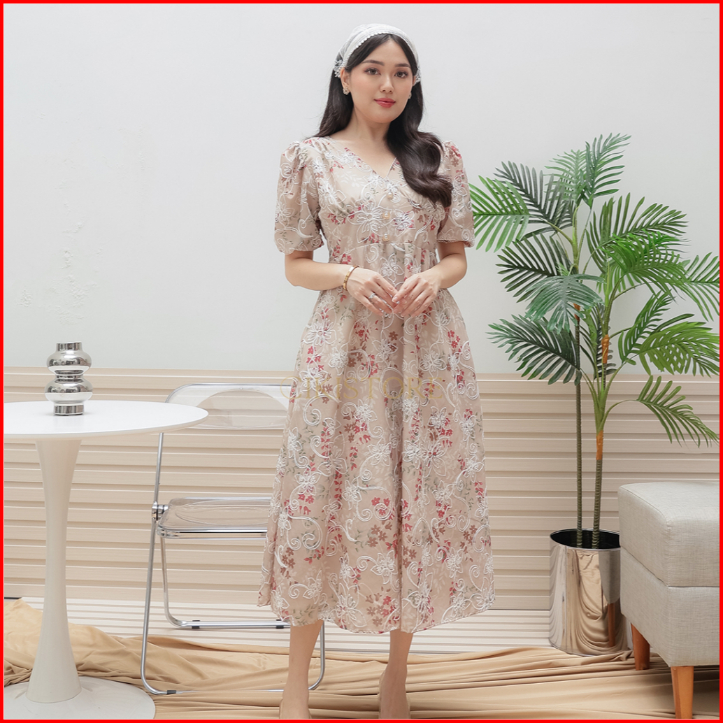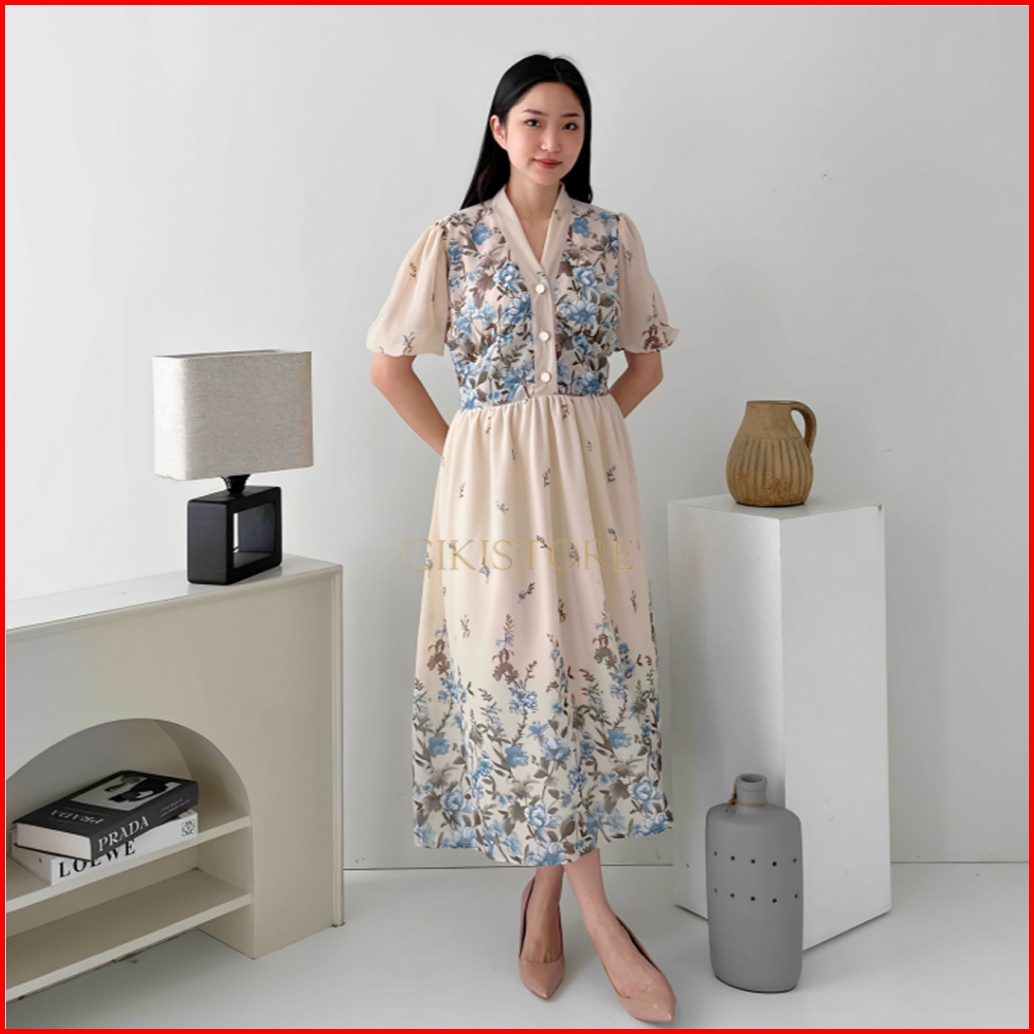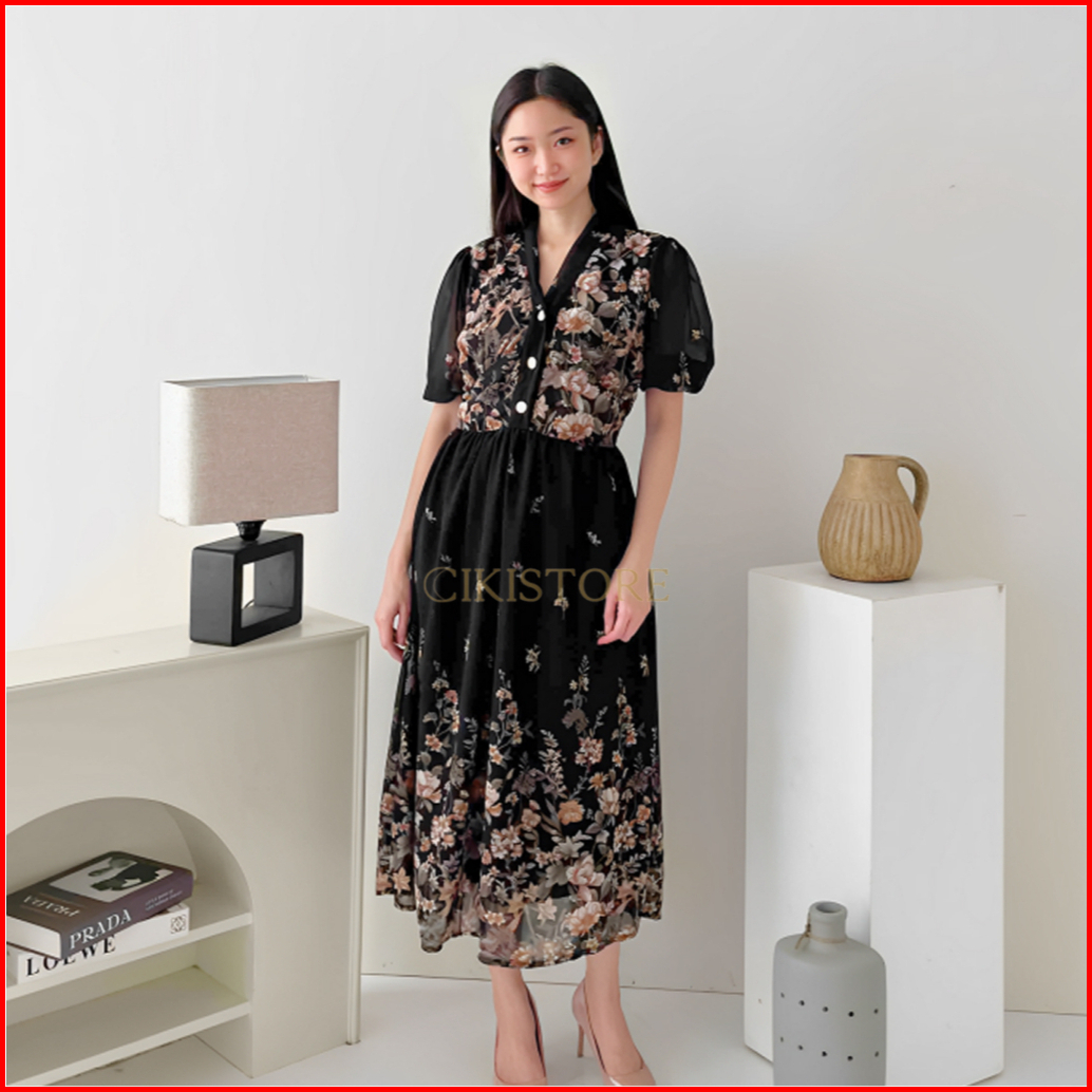 Cikistore - Giory Dress Wanita Midi Ceruty With Furing Dress Korean Style Casual