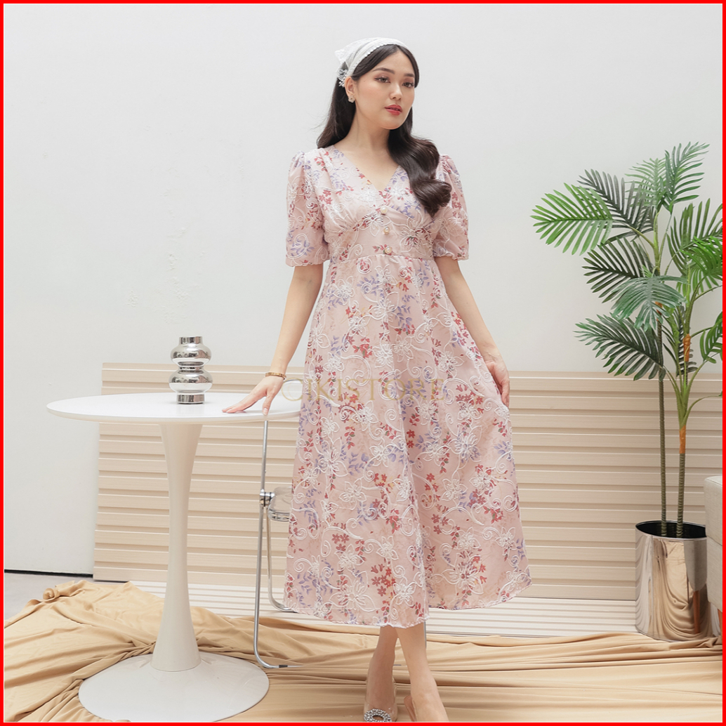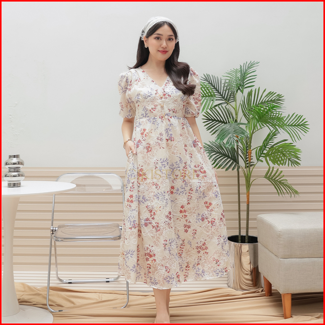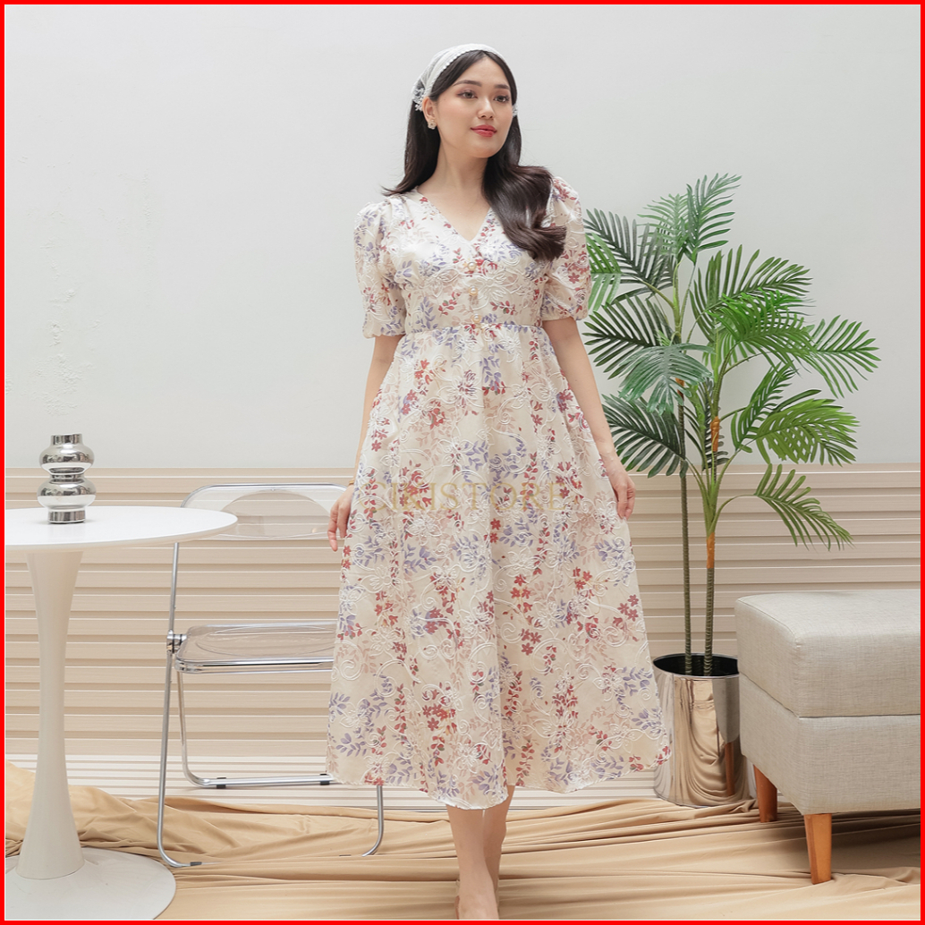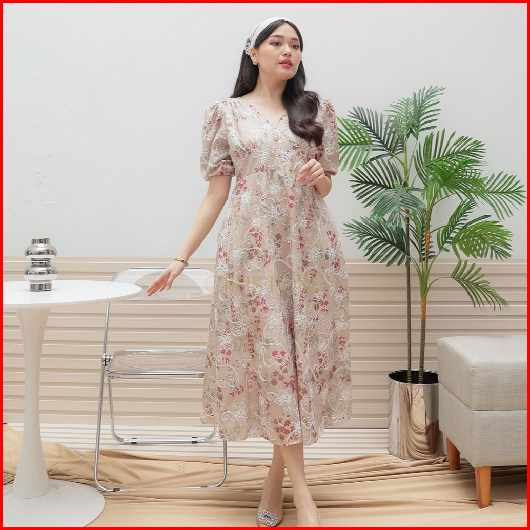 Cikistore - Giory Dress Wanita Midi Ceruty With Furing Dress Korean Style Casual