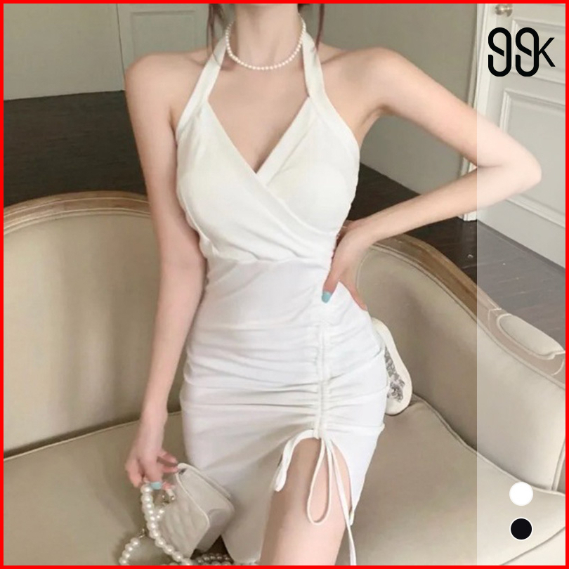Halter Neck Bodycon Mini Dress With Side Drawstring 1466 S M L Xl