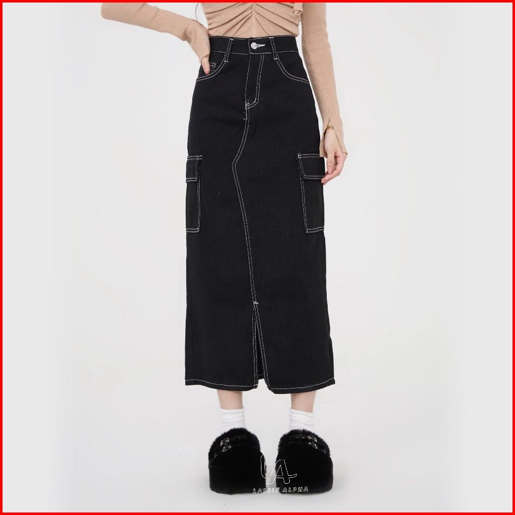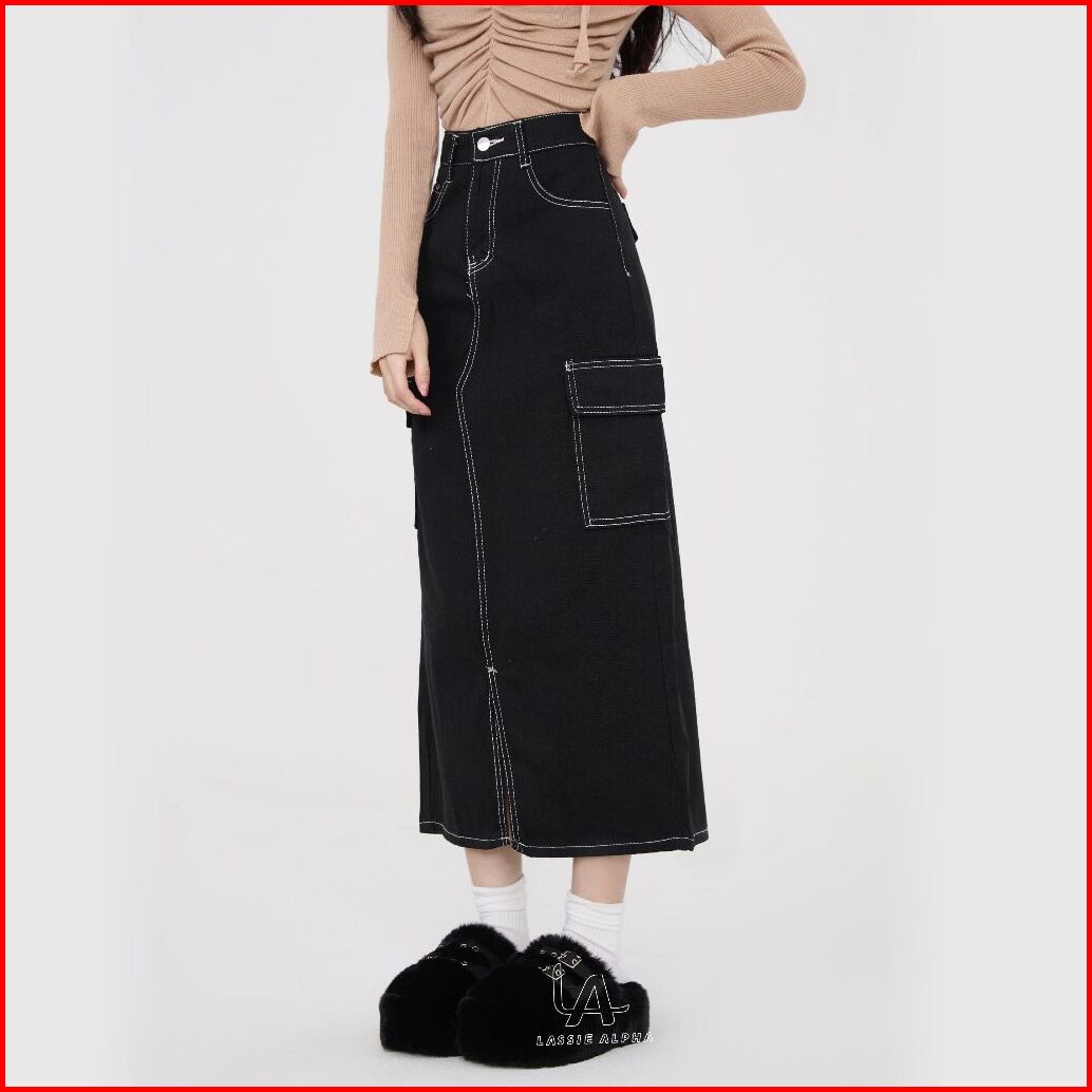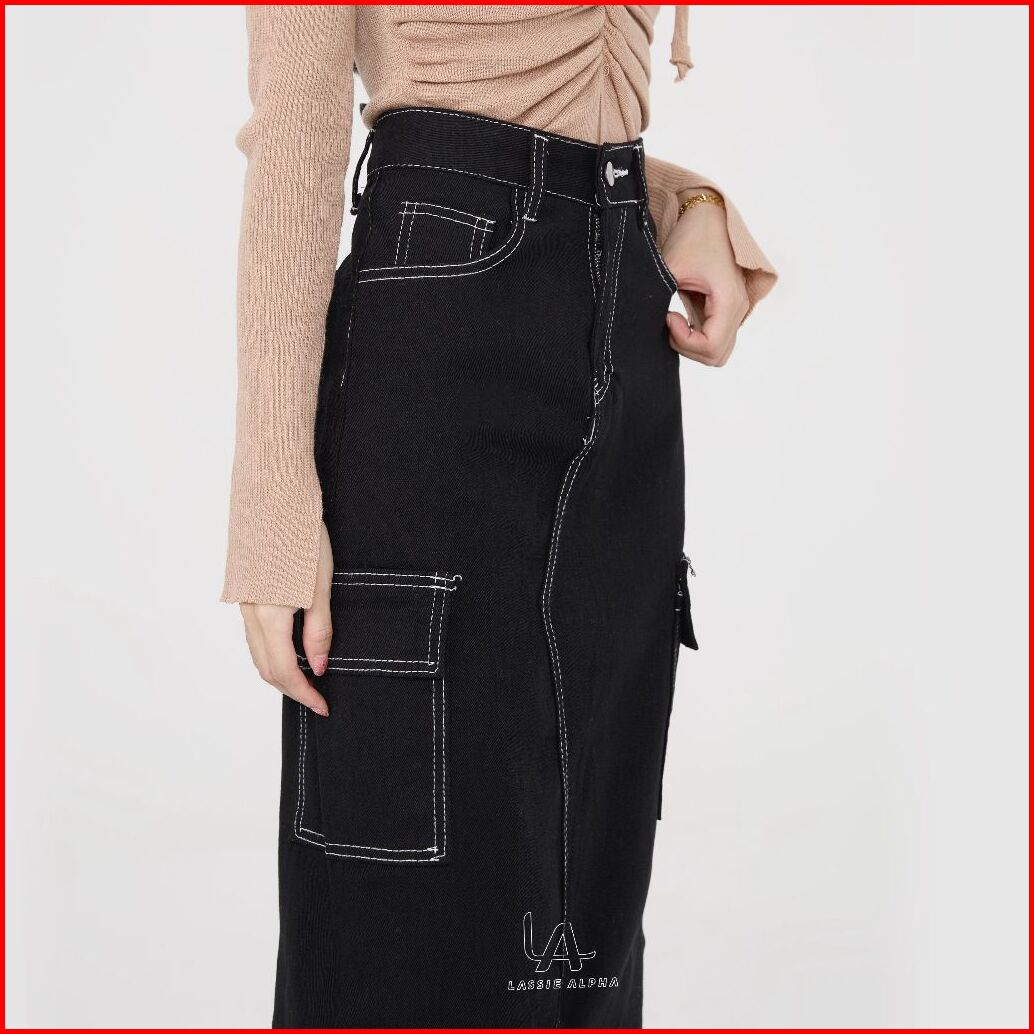 Lassie Alpha J67 Ready Stok Rok Panjang Hitam Wanita Rok Casual Rok