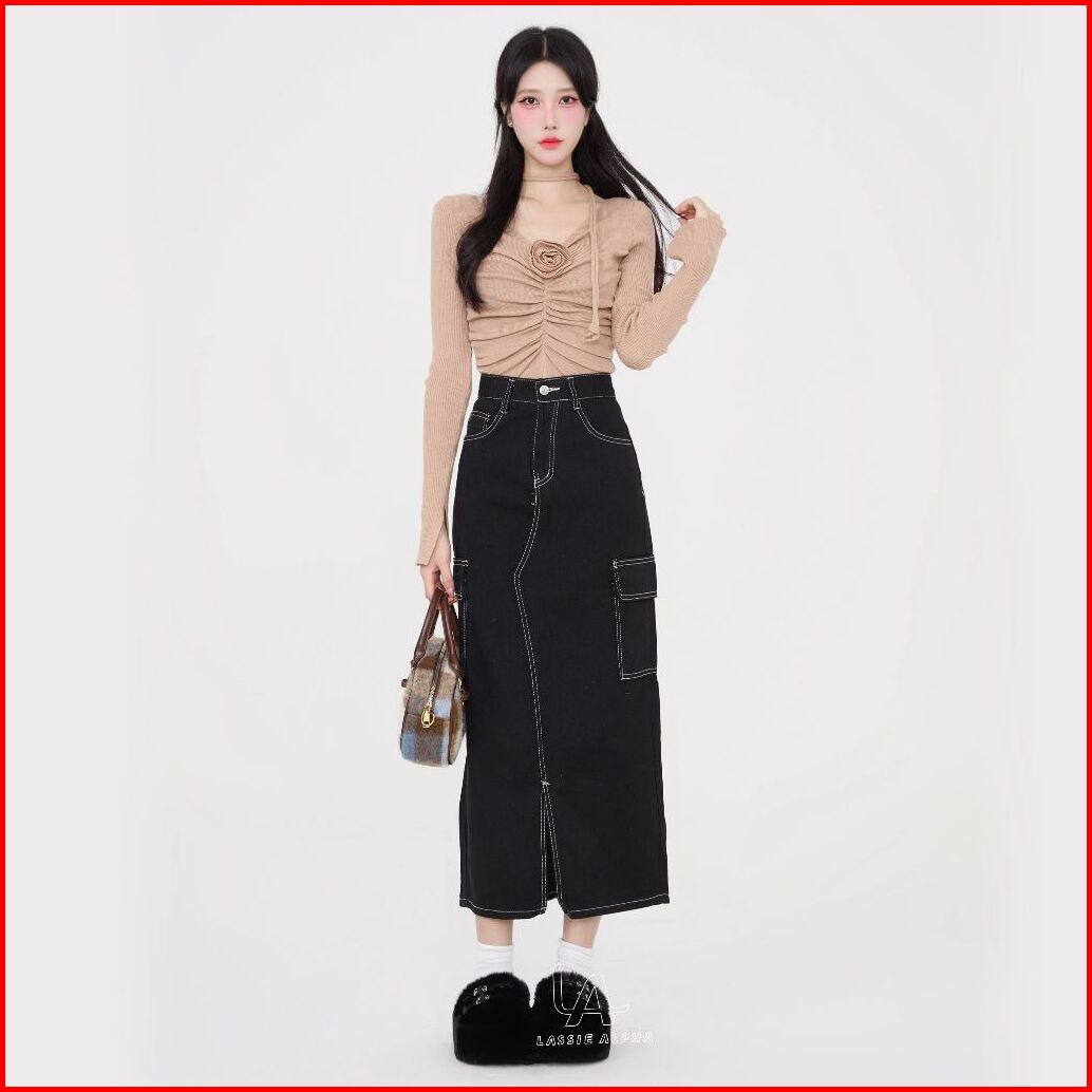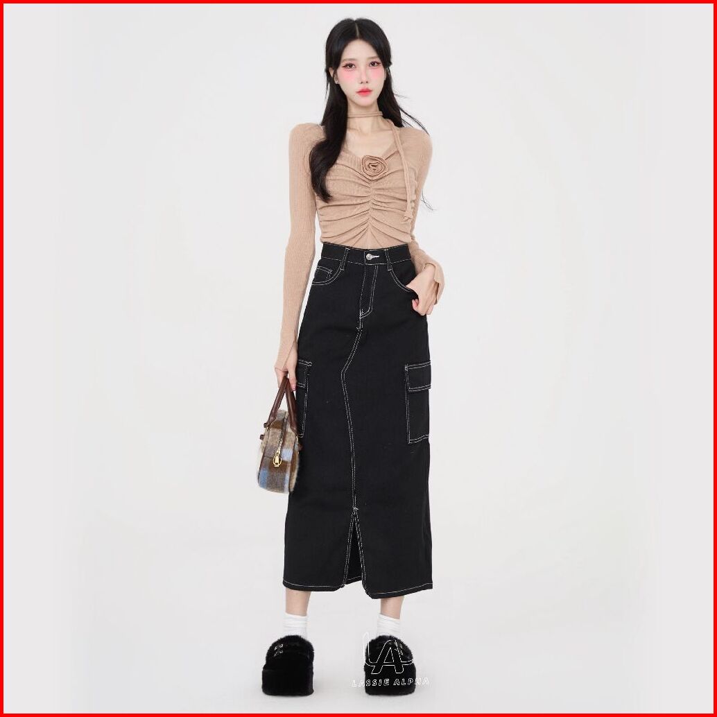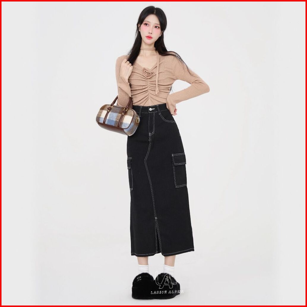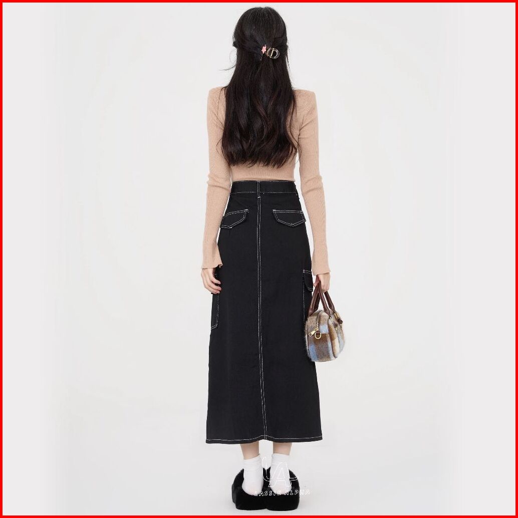 Lassie Alpha J67 Ready Stok Rok Panjang Hitam Wanita Rok Casual Rok