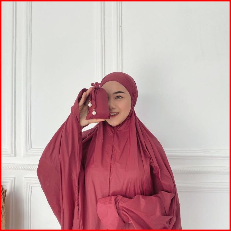 Mukena Traveling Mini Pouch Mukena Travel Terusan Bahan Parasut Impor Korea Premium