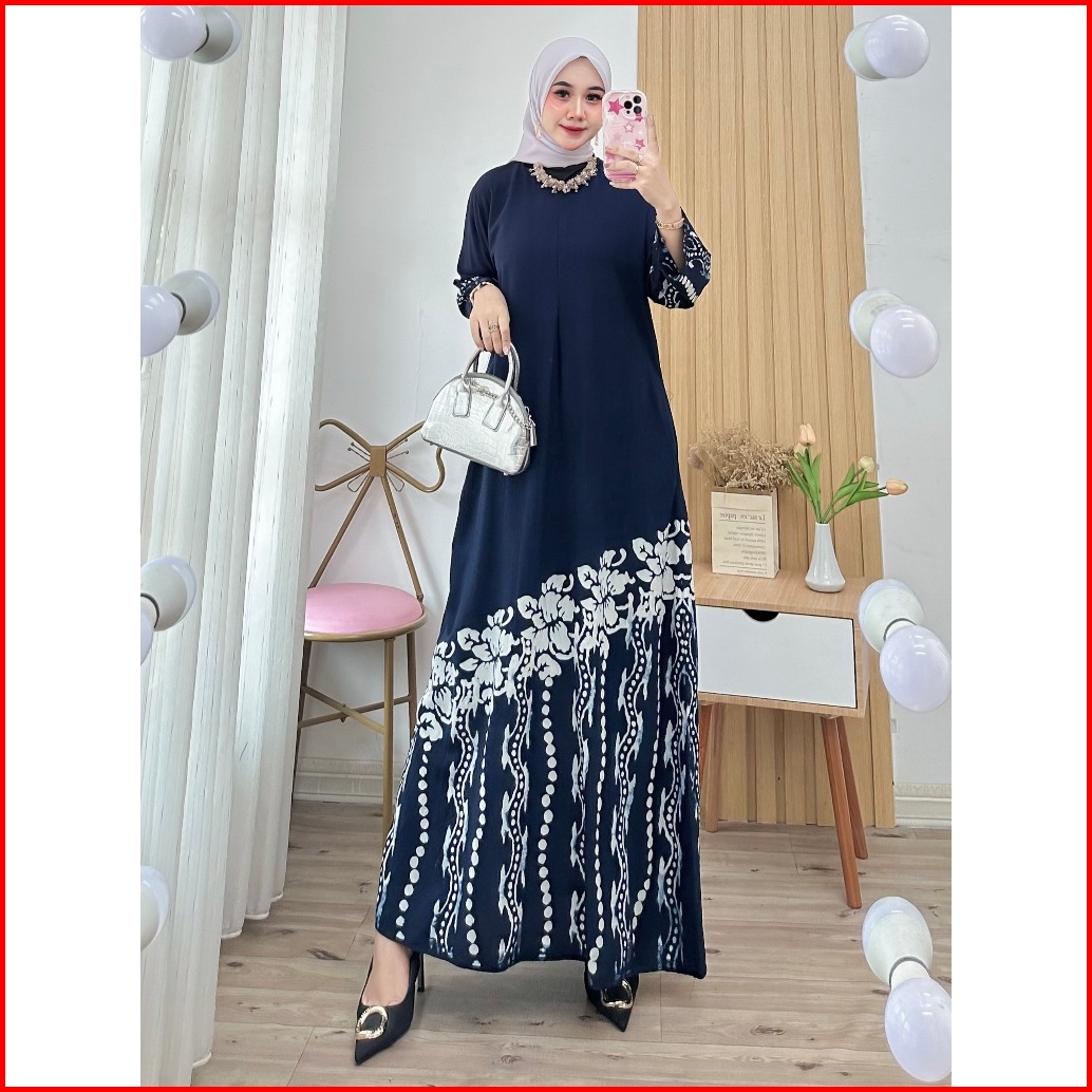 Maxi Dress Batik Cap Batik Cetak Sekdres Rayon Premium Tebal Semi Gamis
