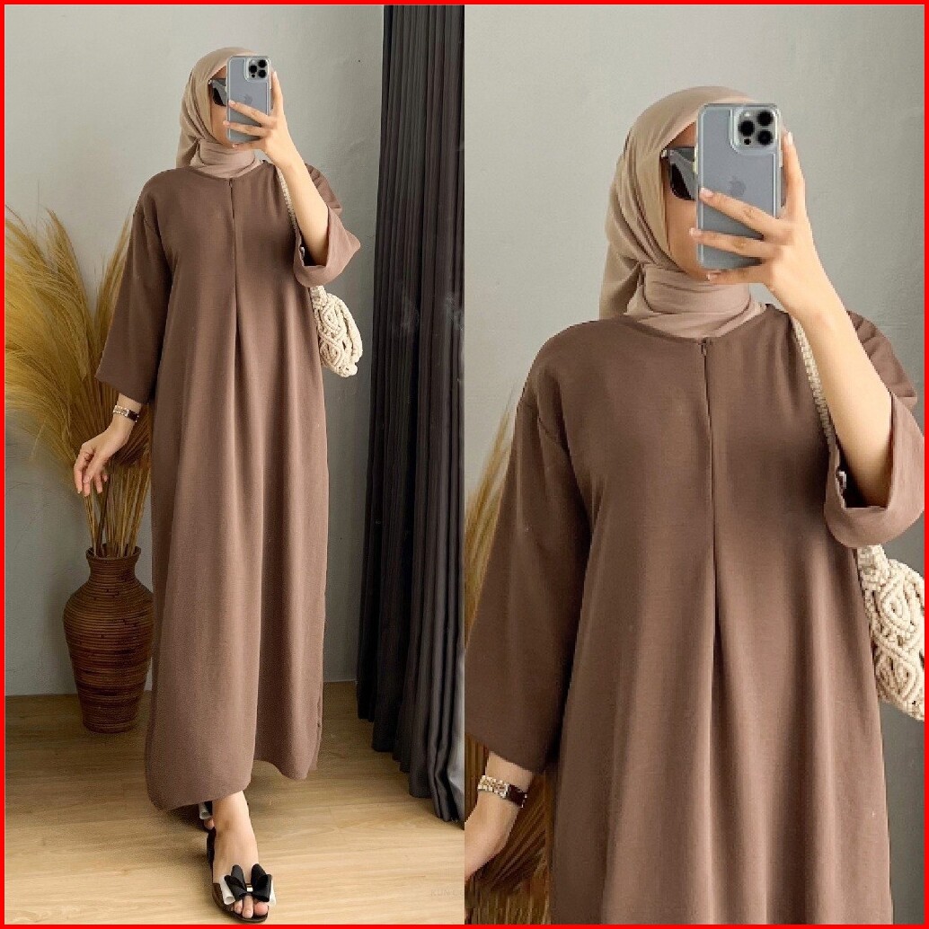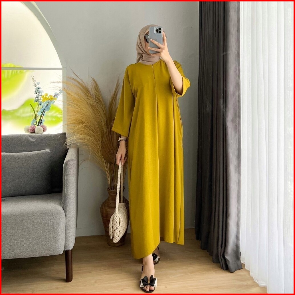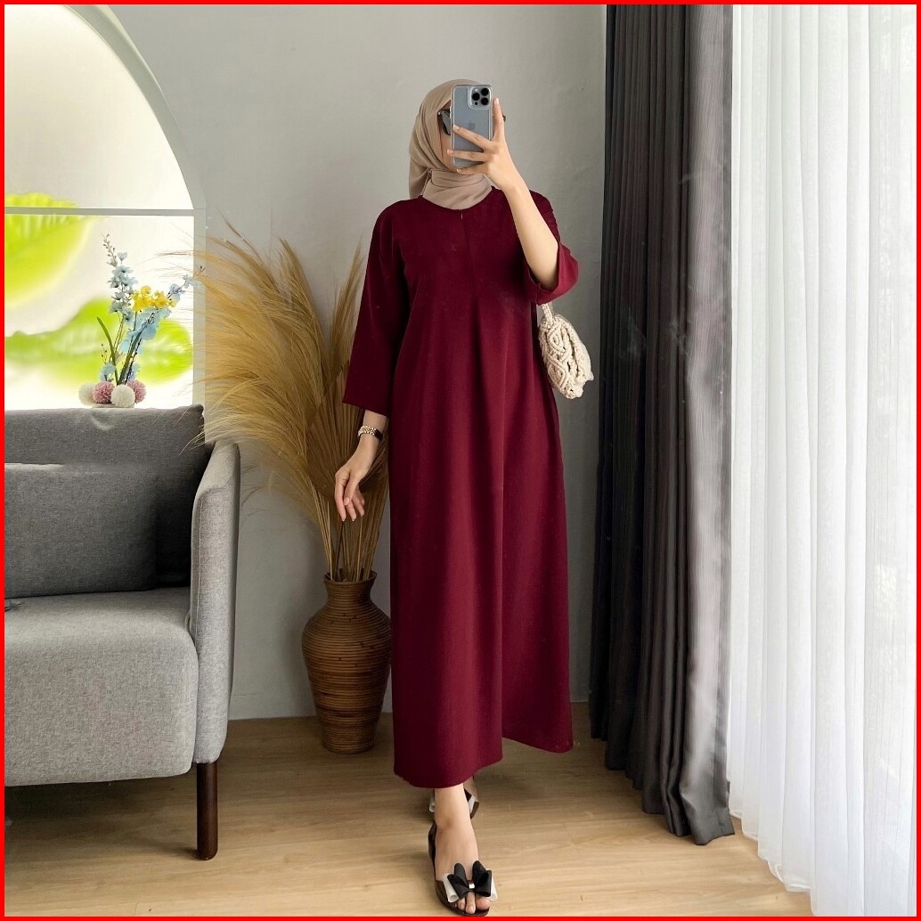 Daster Crinkle Lengan 3 4 Polos Premium Gamis Kekinian Busui Friendly - Kun Collection
