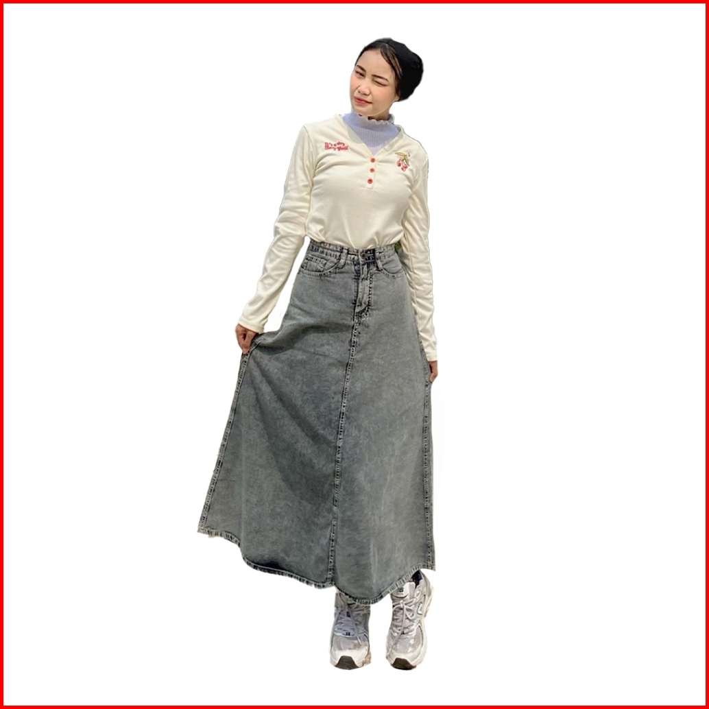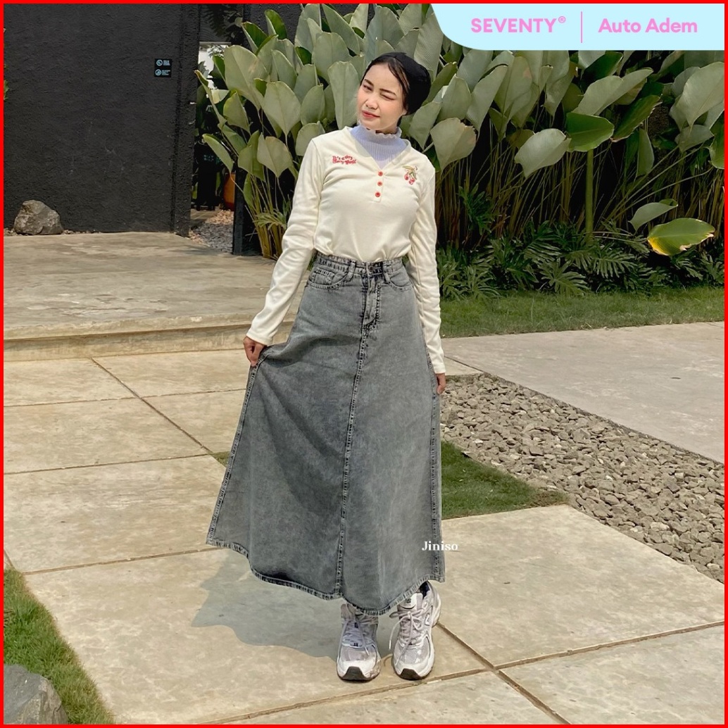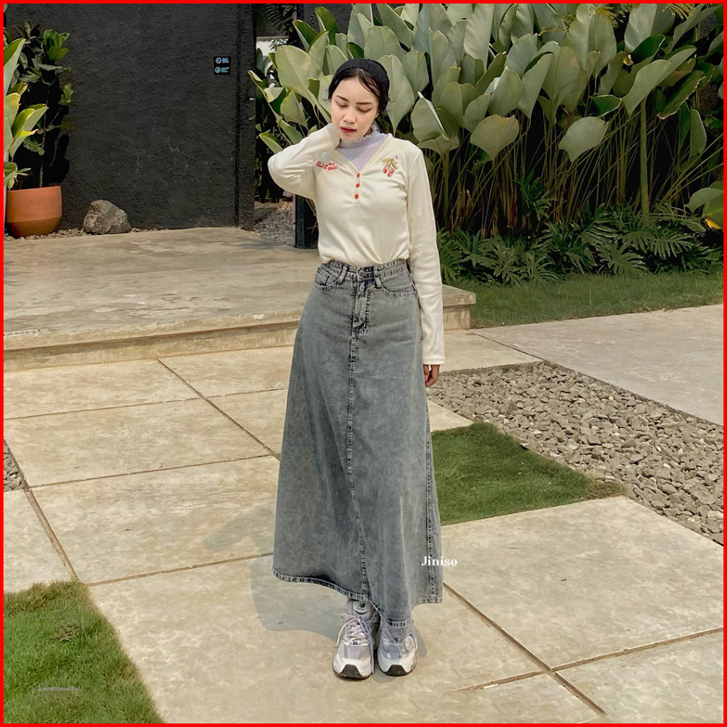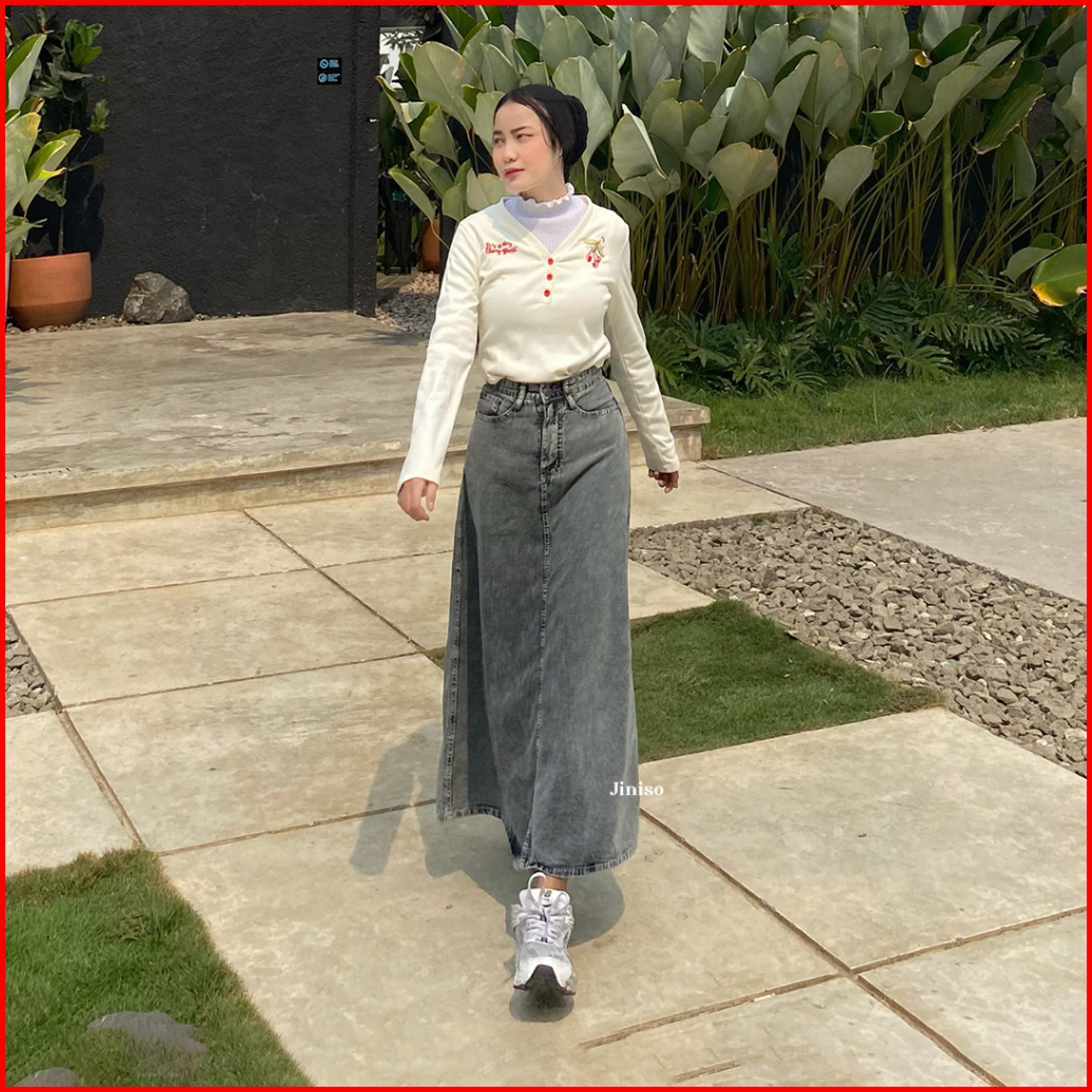 Jiniso - Highwaist Rok Basic Jeans Panjang 990 Seventy