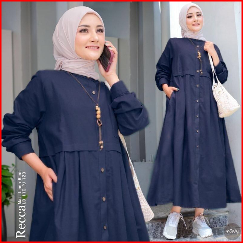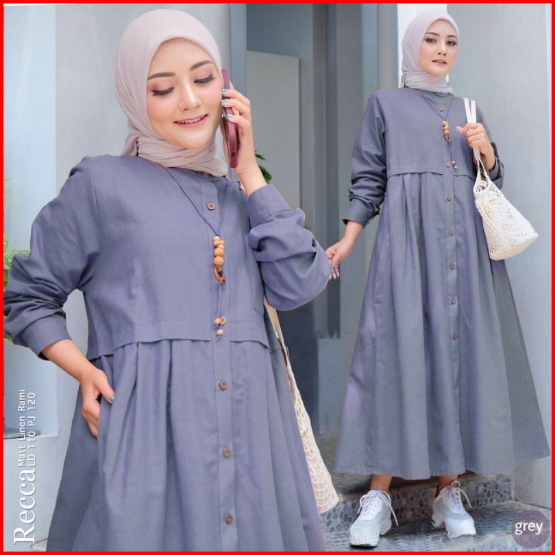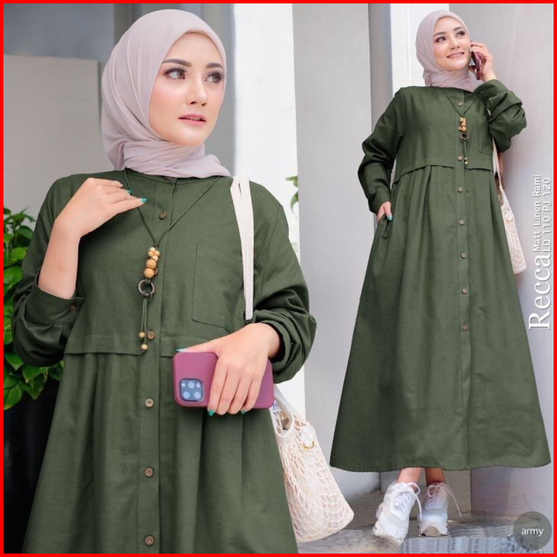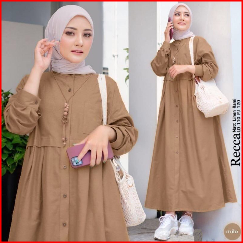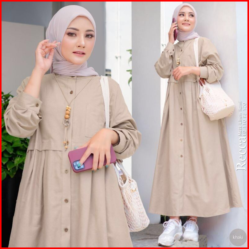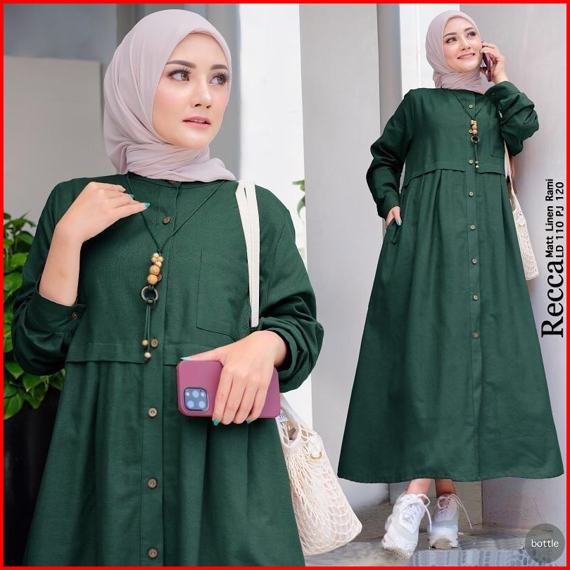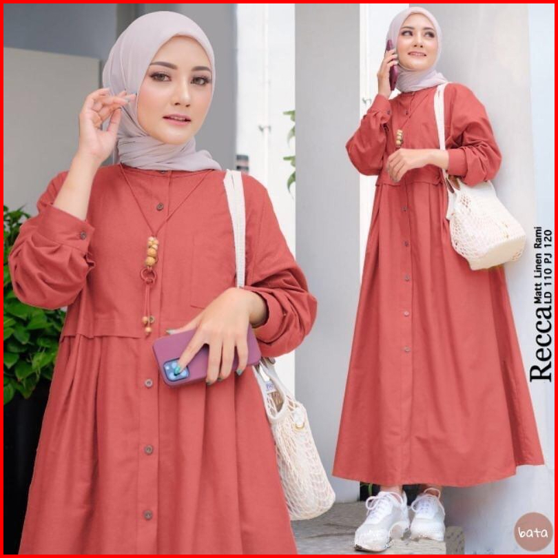 Recca Midi Dress Dress Linen Rami Baju Muslim Wanita Terbaru 2023 Fashion Muslimah Casual Dress Ef