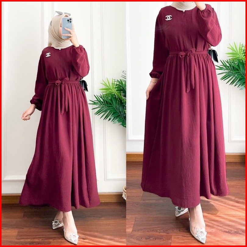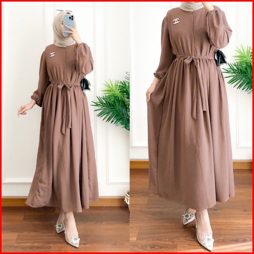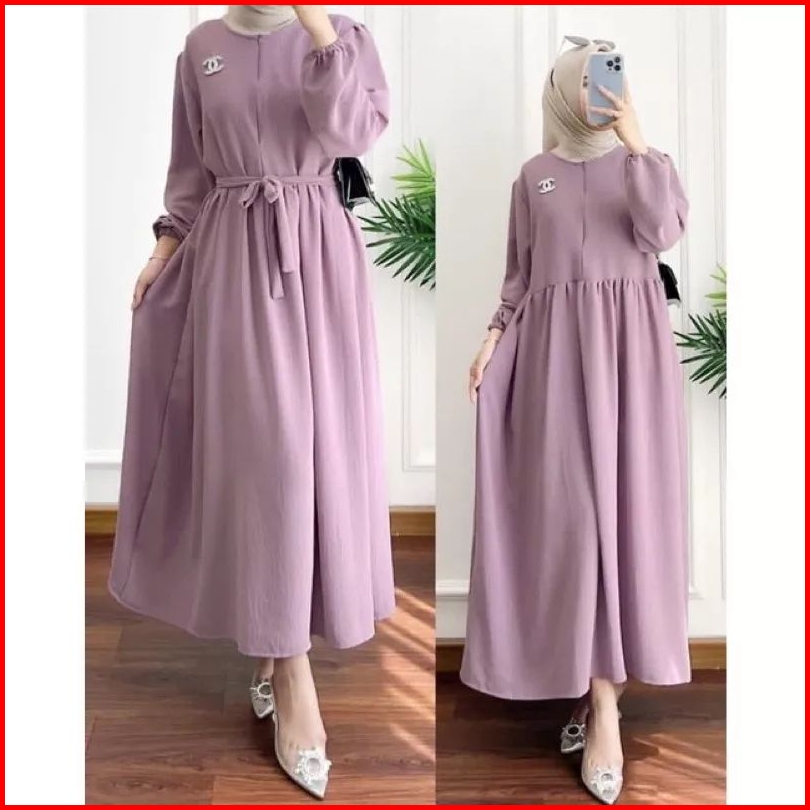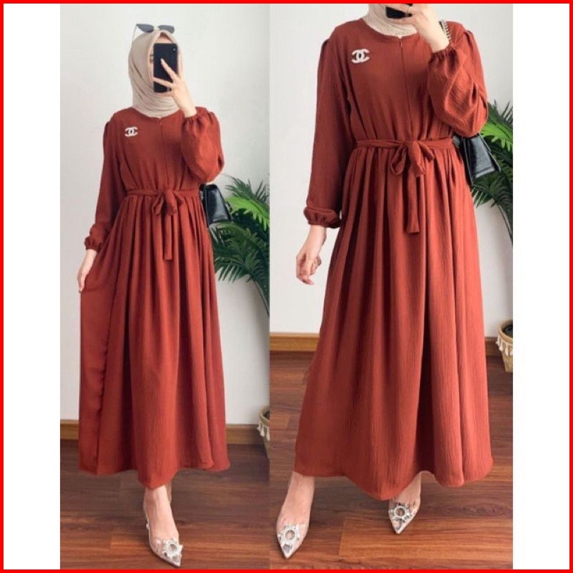 Bavina Midi Dress Cringkel New Arrival Midi Dres Cringkel Gamis Remaja Midi Dress Kekinian Midi Dress Viral Midi Dress C