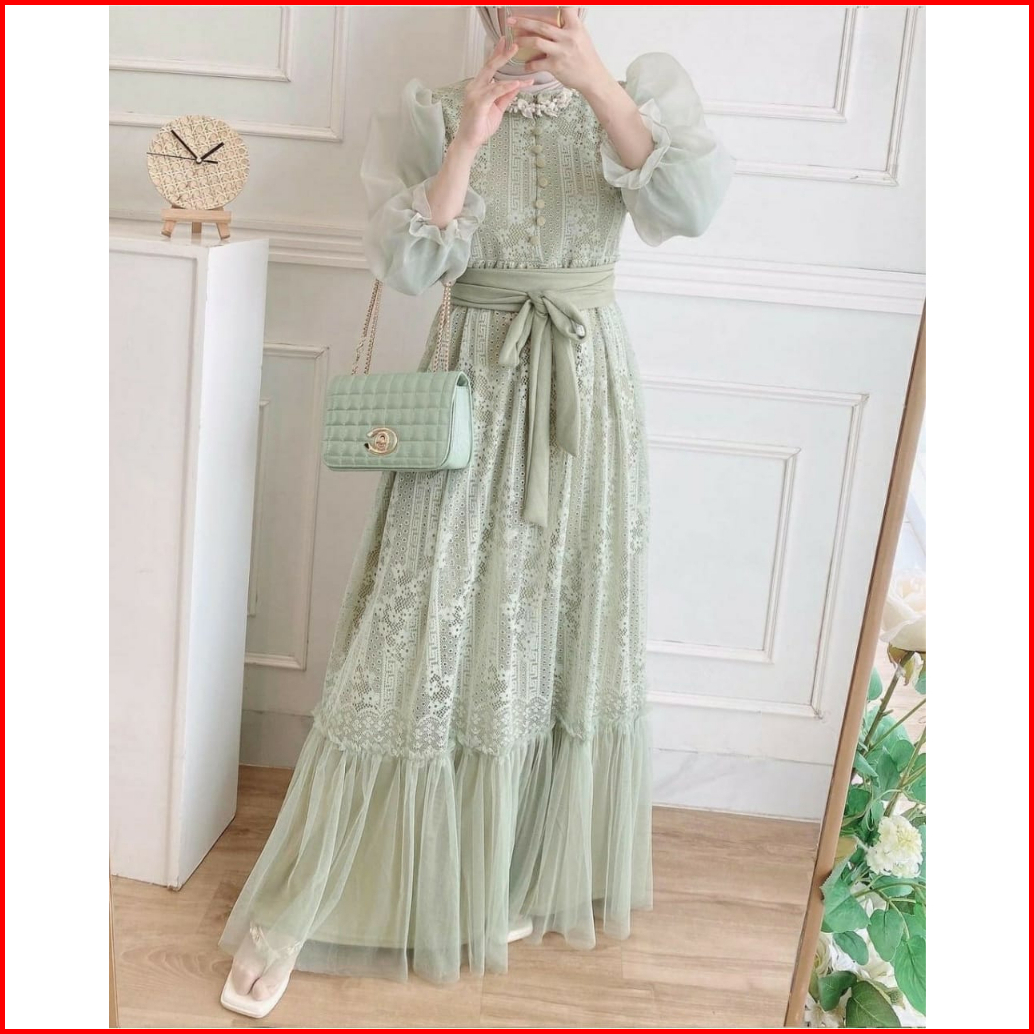 Dress Inara Brukat Cantik Dress Kondangan Wanita Fashion Muslimah Baju Gamis Kekinian