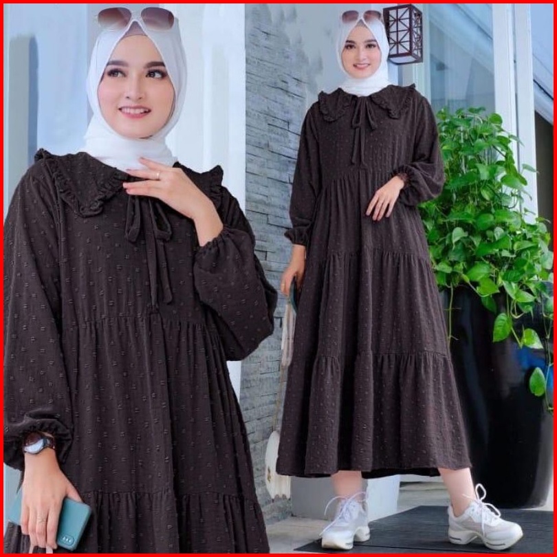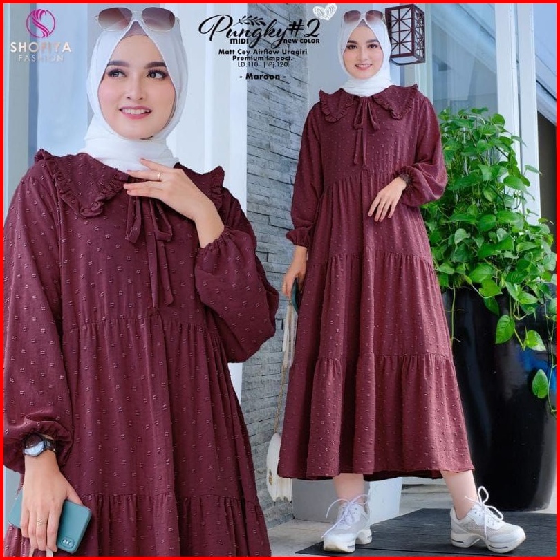 Midi Dress Crinkle Uragiri Wanita Kekinian Gamis Midi Dress Rayon Premium Gamis Wanita Crinkle Uragiri