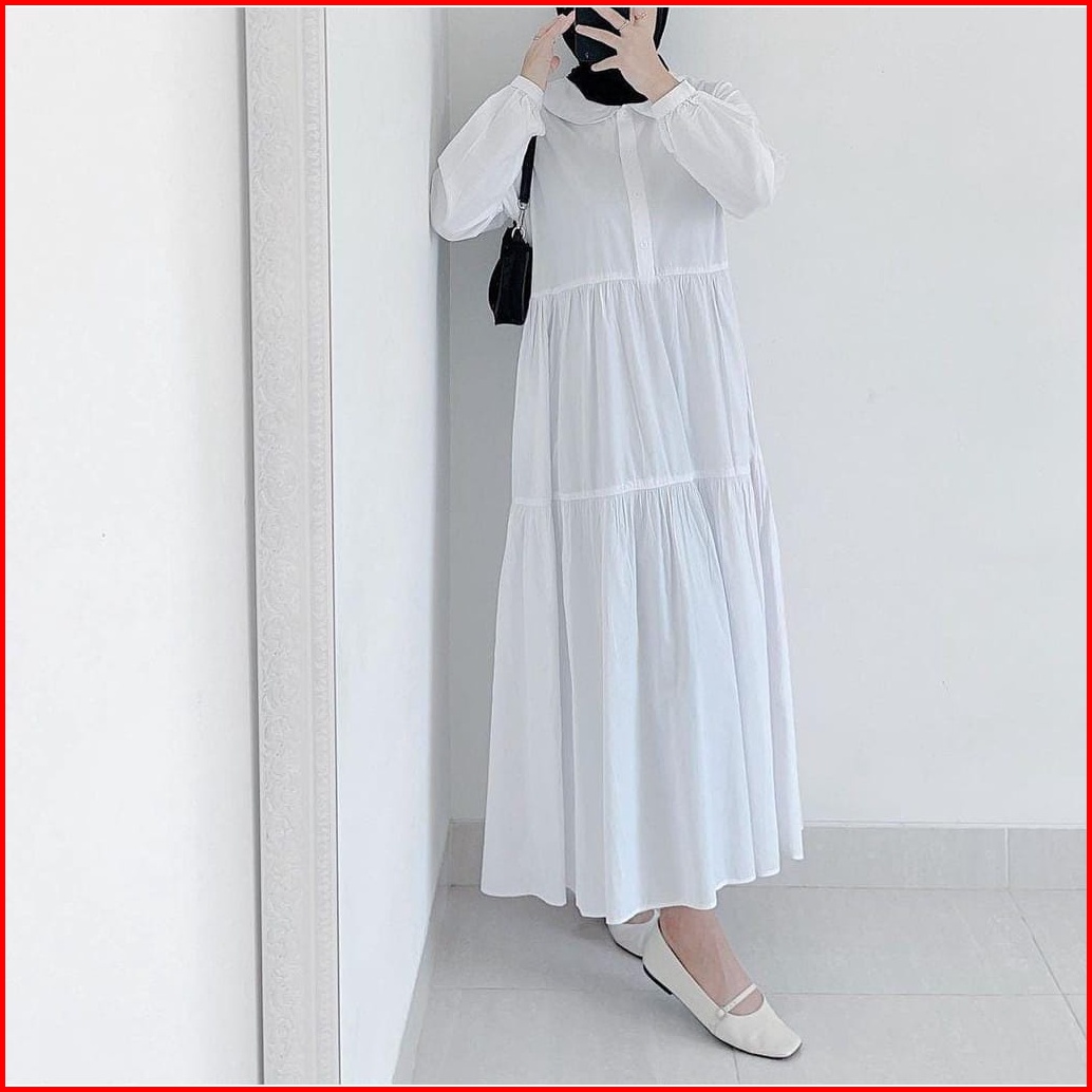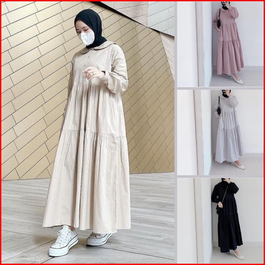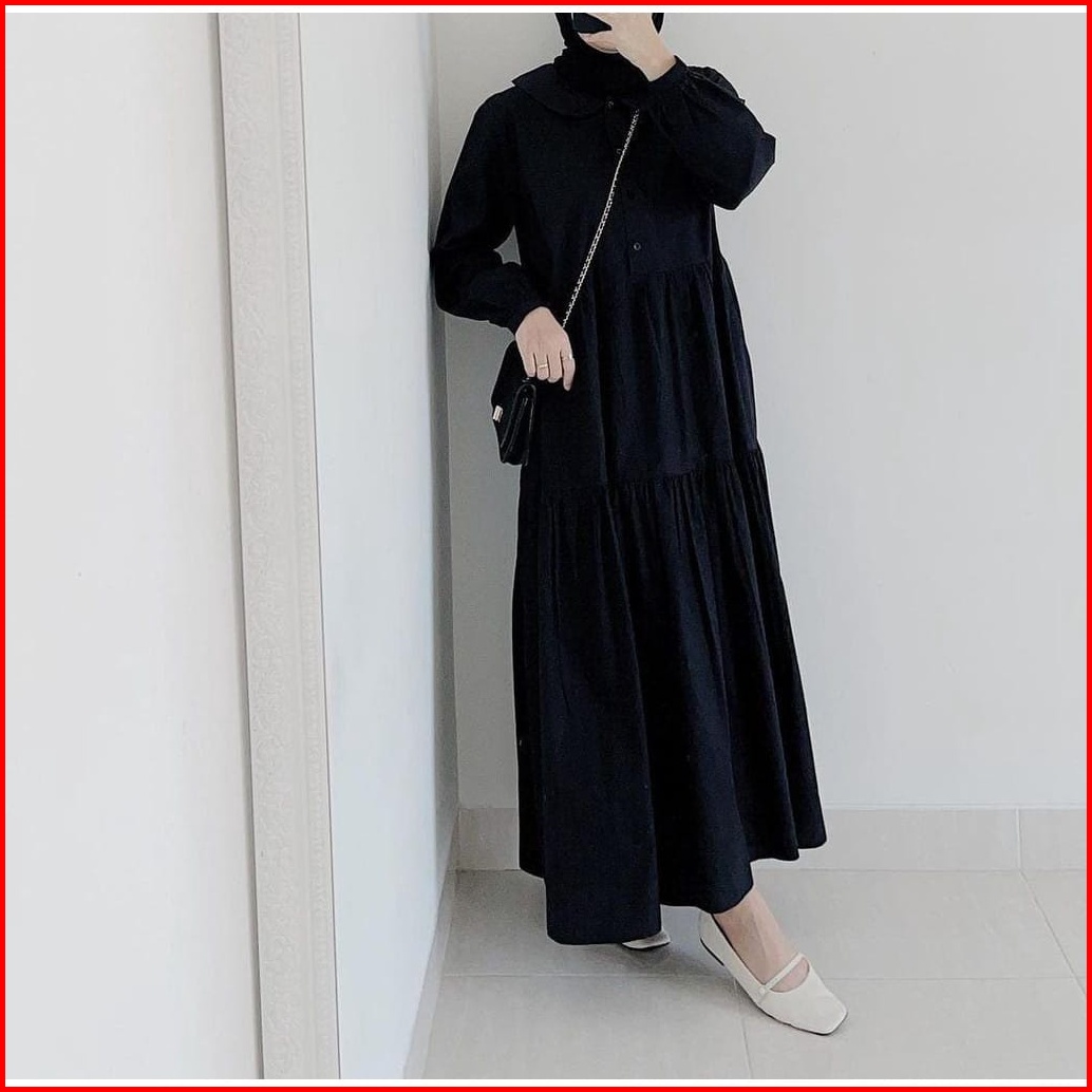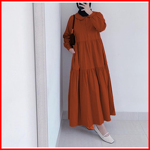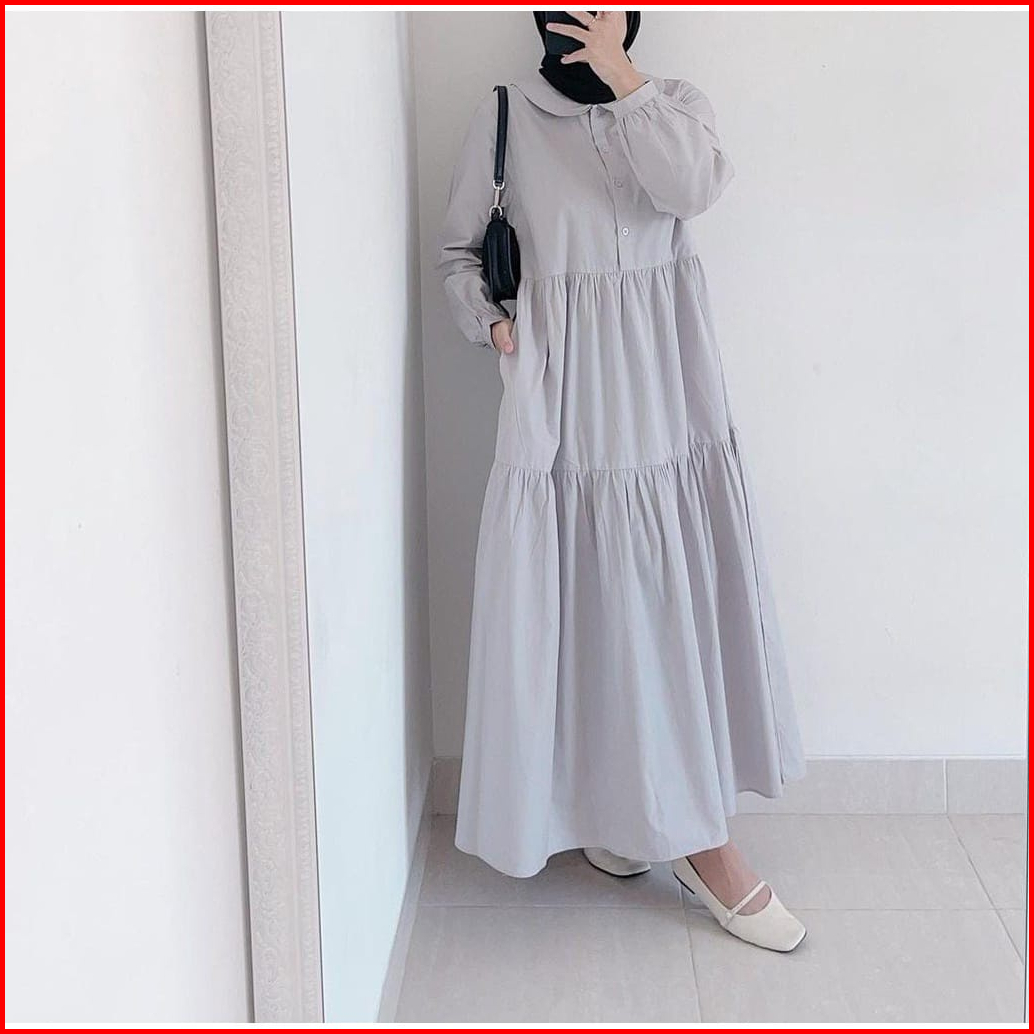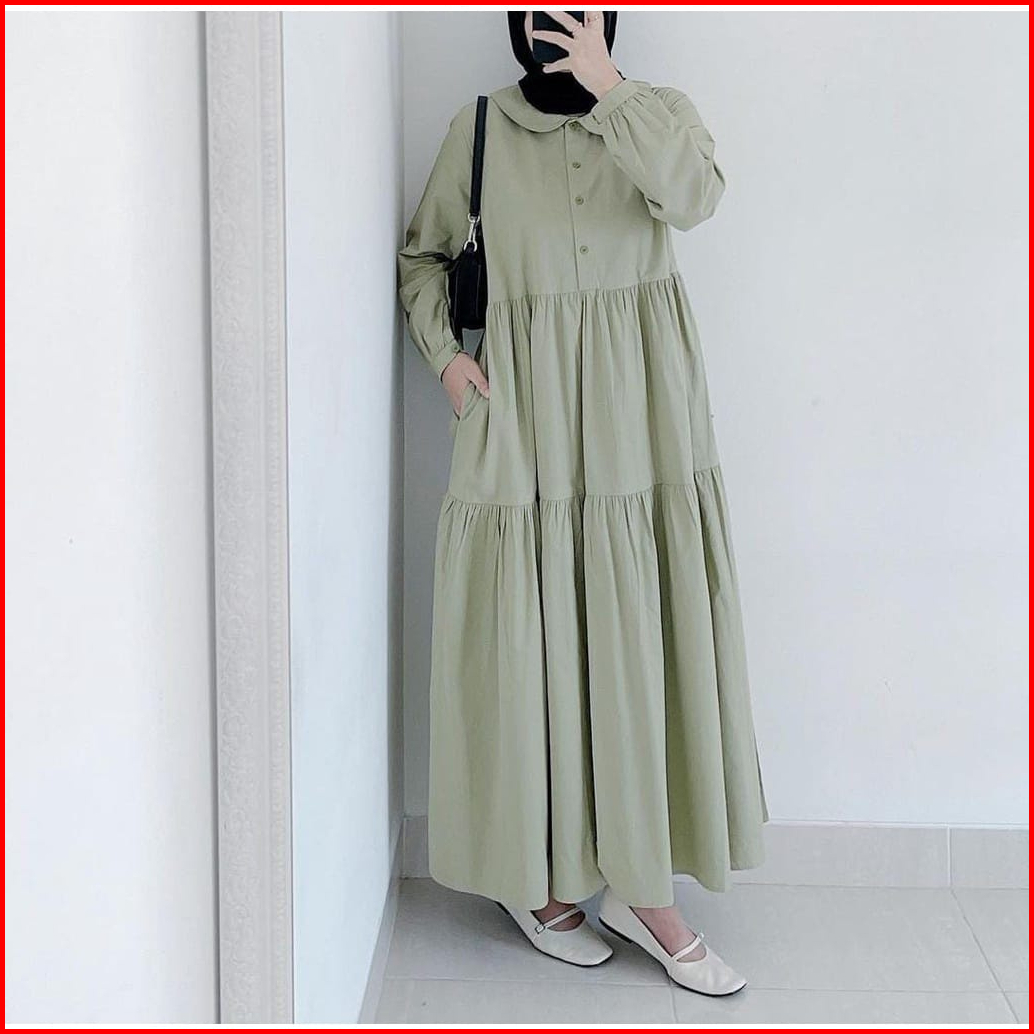 Chika Midi Long Dres Gamis Wanita Model Rempel Susun Melingkar Kancing Depan Aktif Busui Friendly