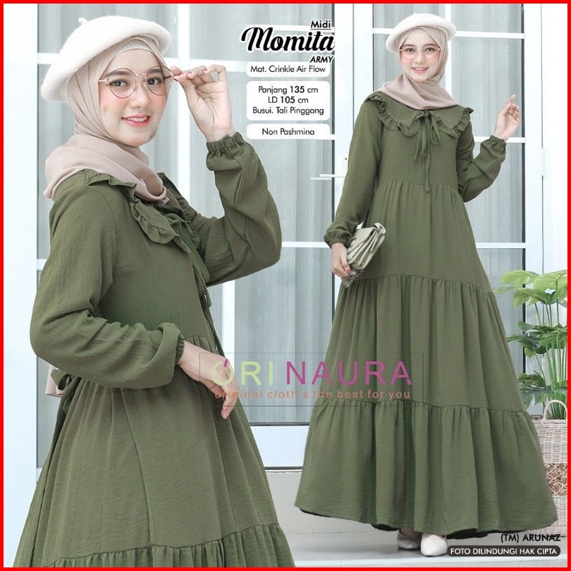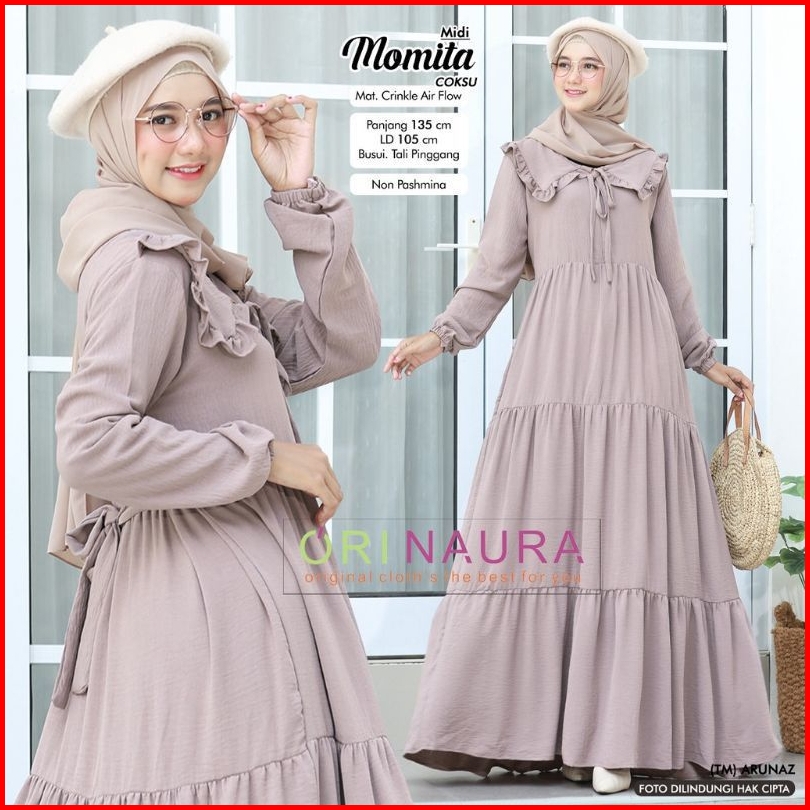 Momita Midi Dress Model Terlaris Gamis Crinkle Airflow Gamis Jumbo Gamis Wanita Muslimah