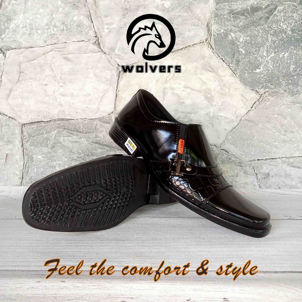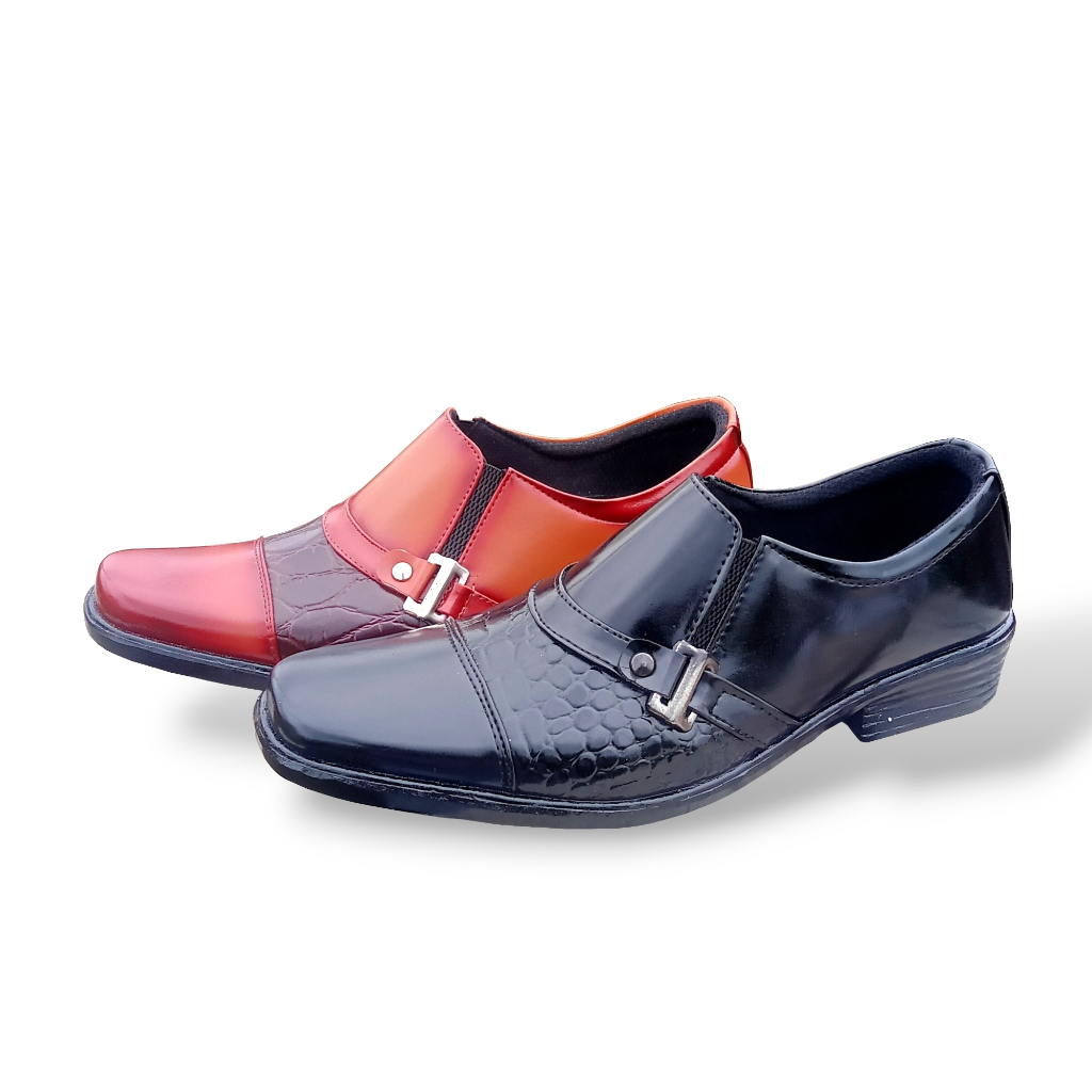 Sepatu pantovel Pria Hitam Slip On Kulit Sintetis Tanpa Tali