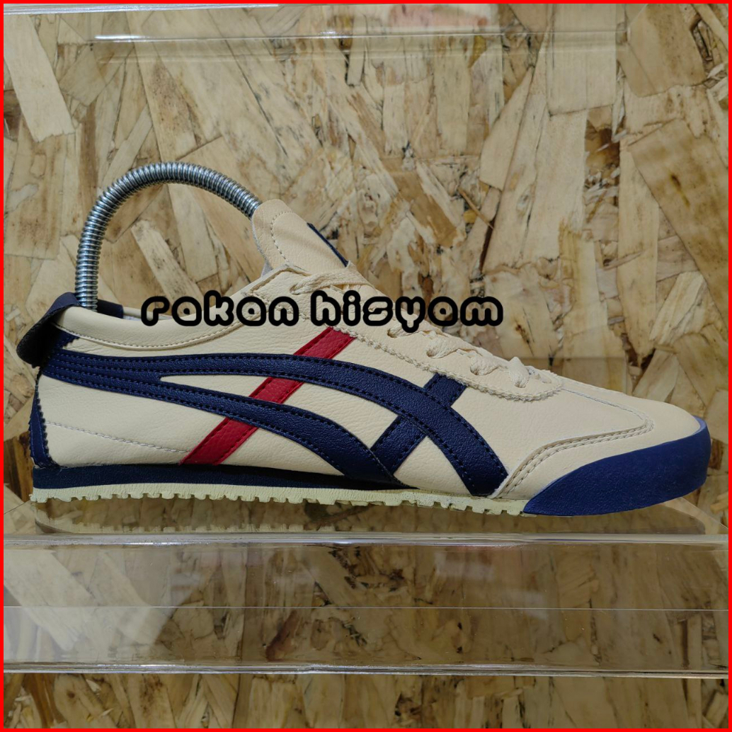 Sneakers Tali Pria Wanita Cream Navy Merah