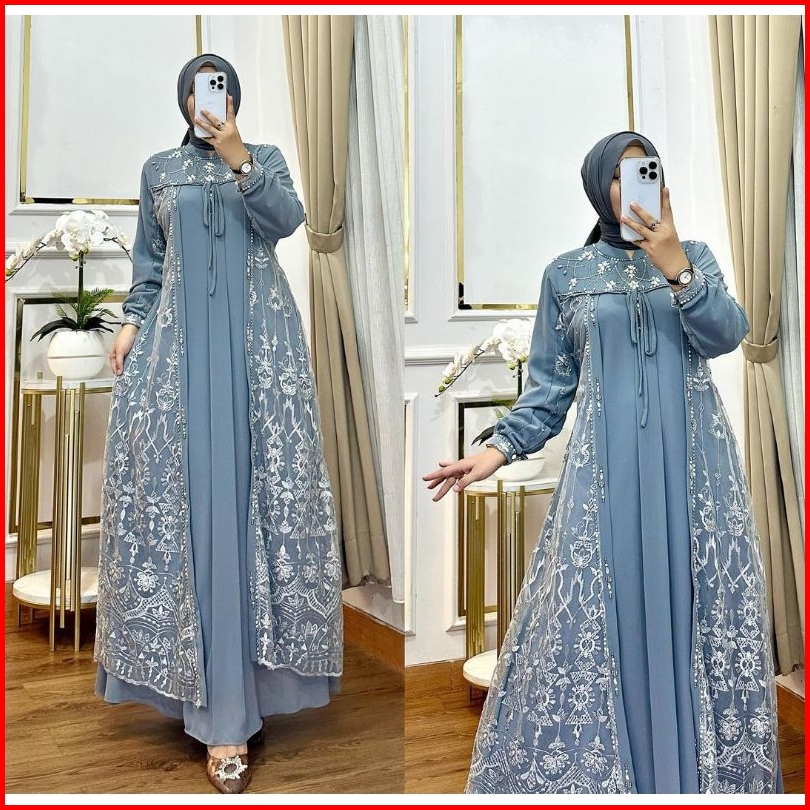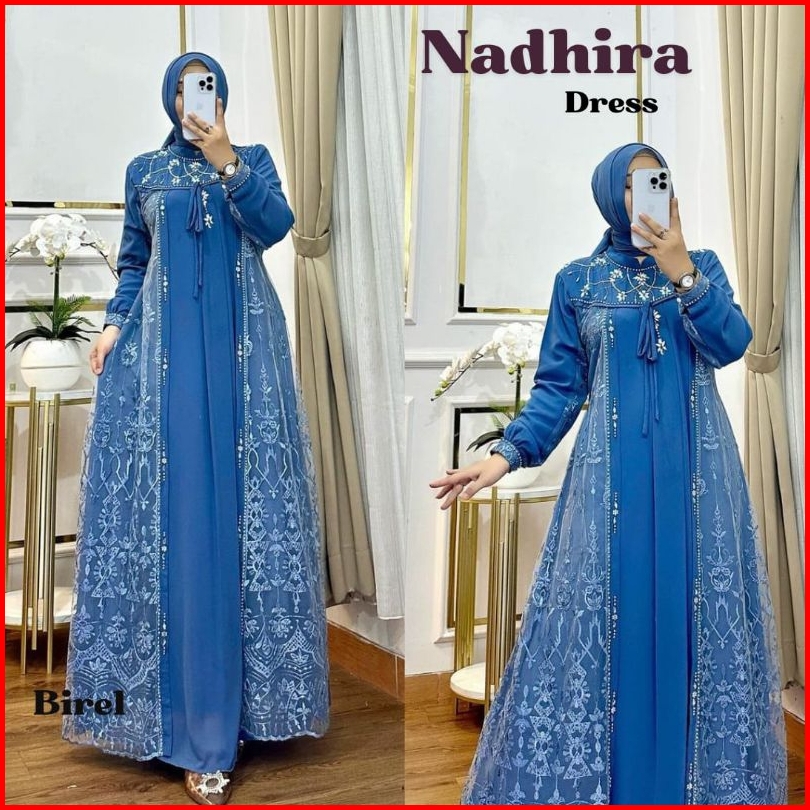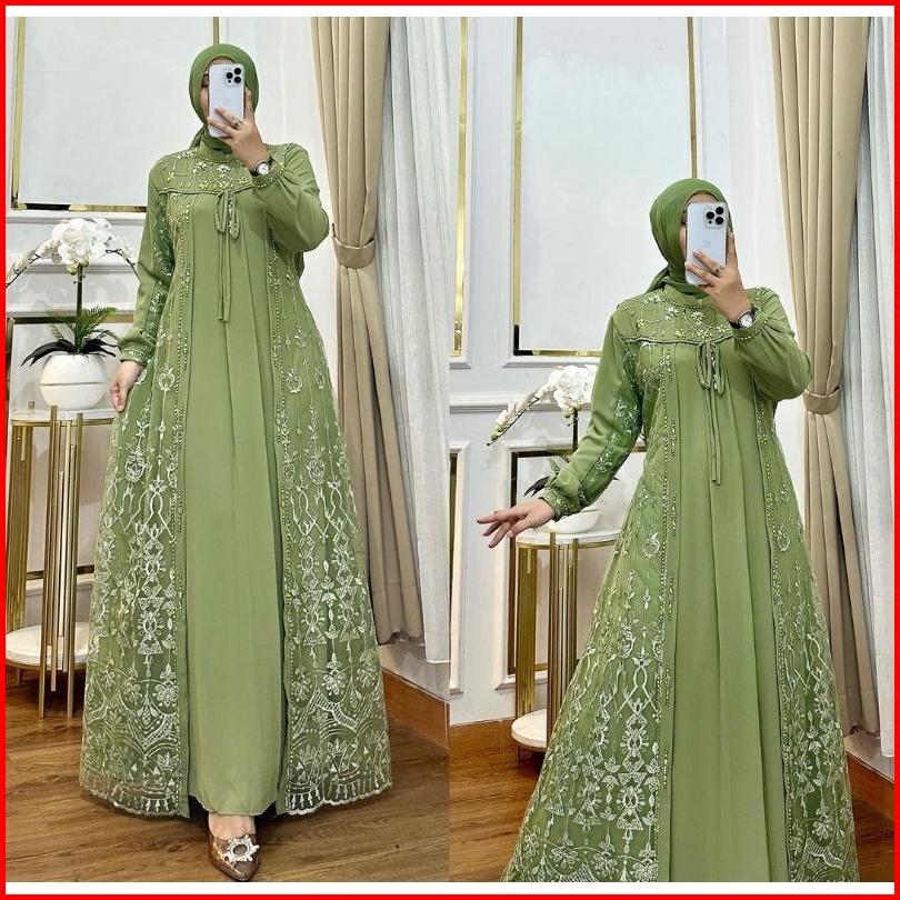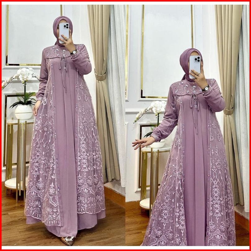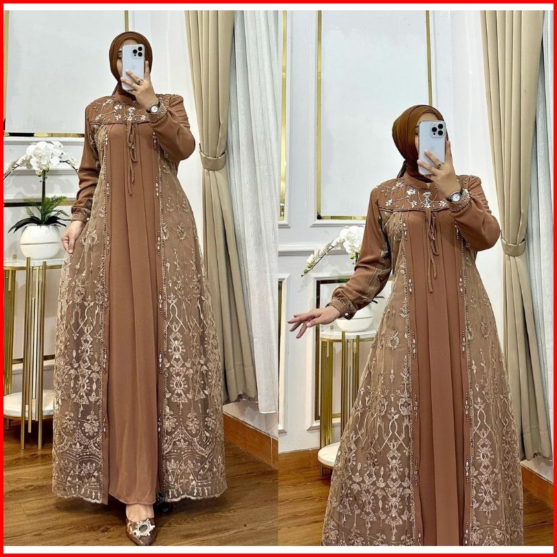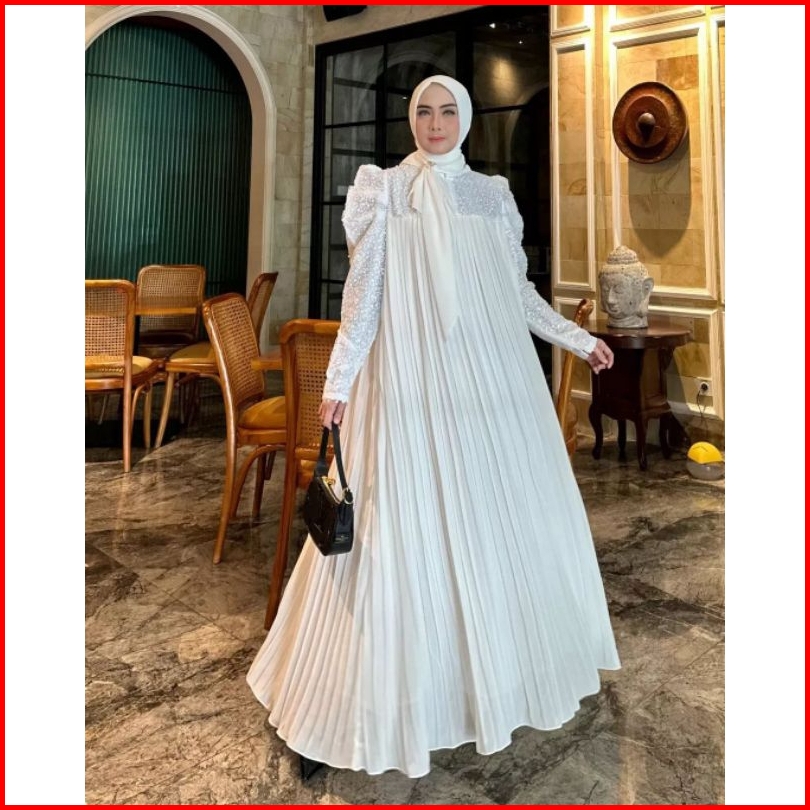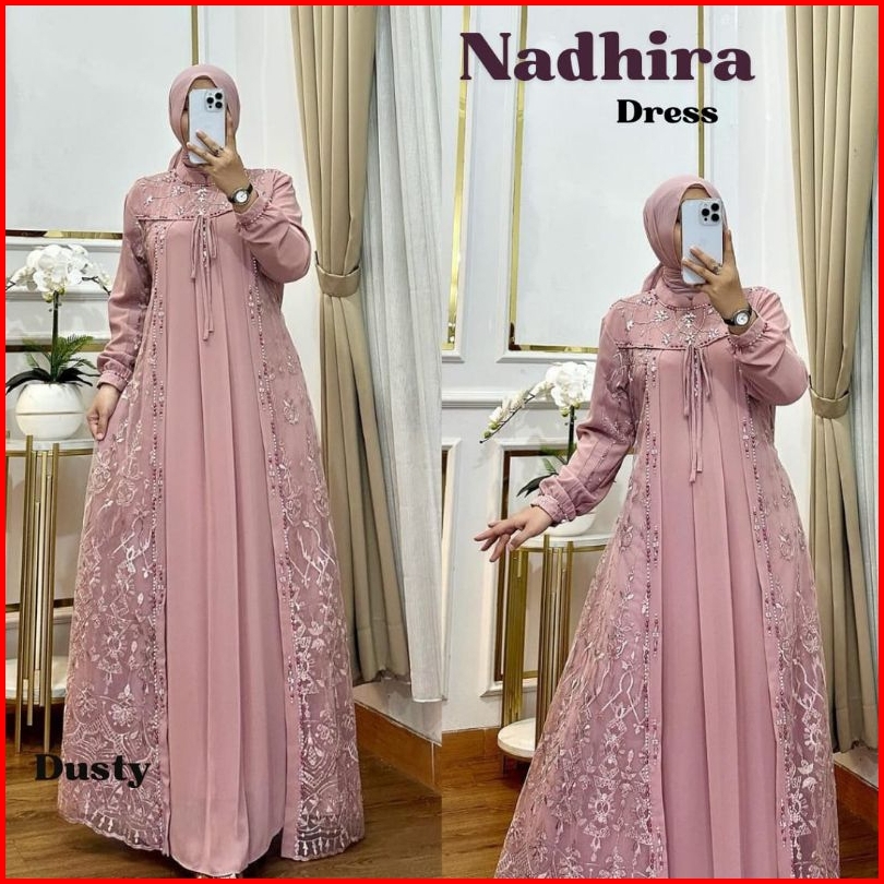Flashale Busana Muslim Remaja Pesta Super Mewah Nadhia Dress Mat Ceruty Babydoll Mix Brukat Mewah
