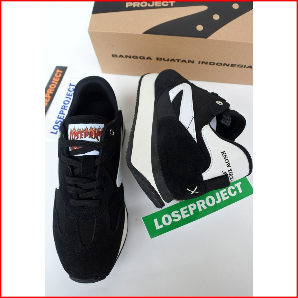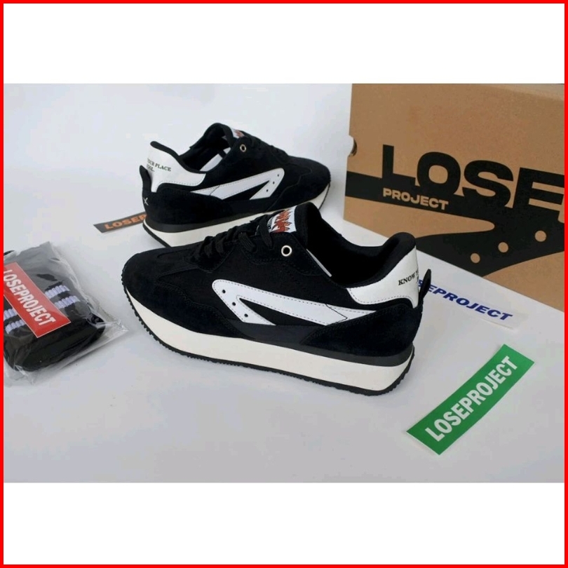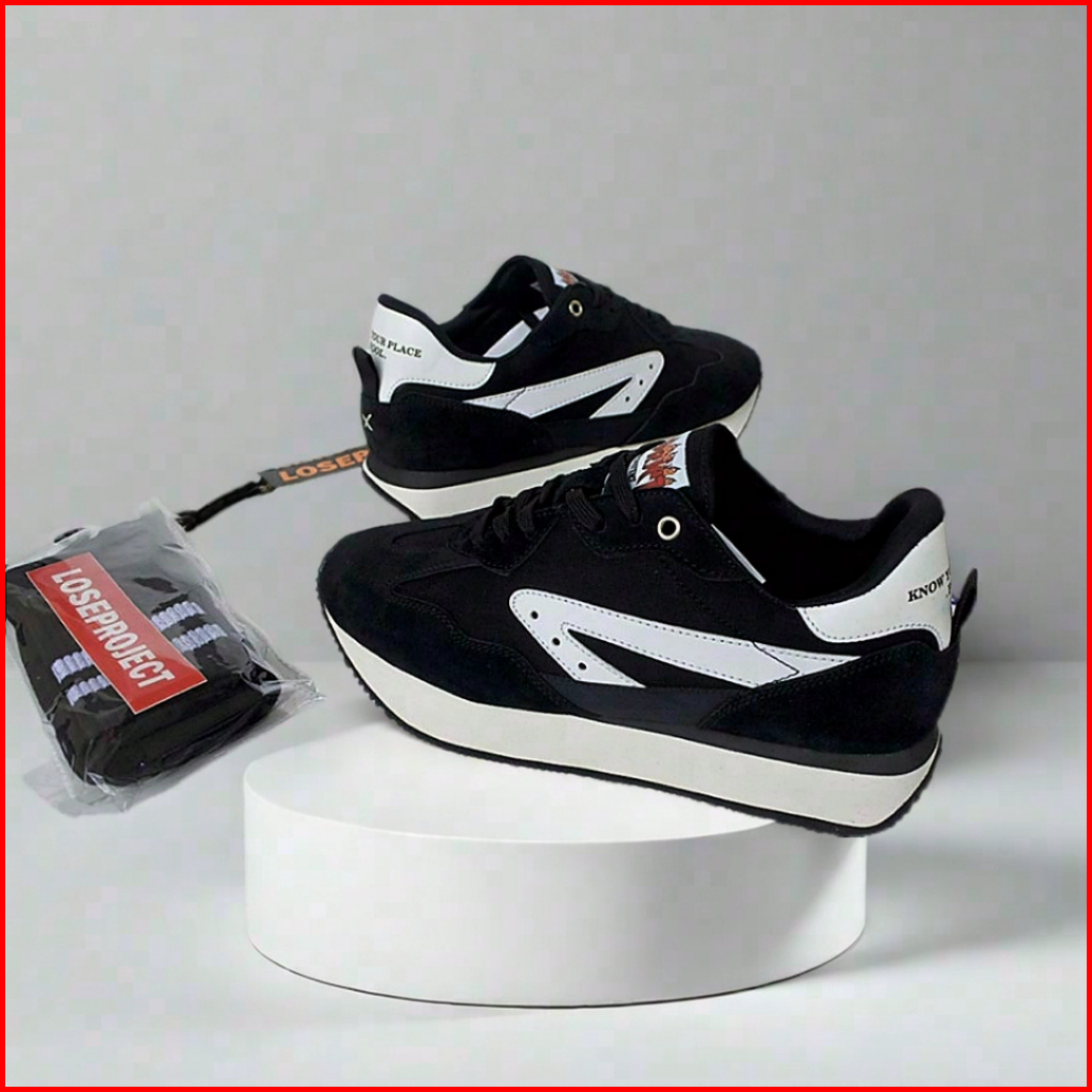 Sepatu Sneakers Running Joging Pria Wanita Unisex Loseproject Ryomen Black White