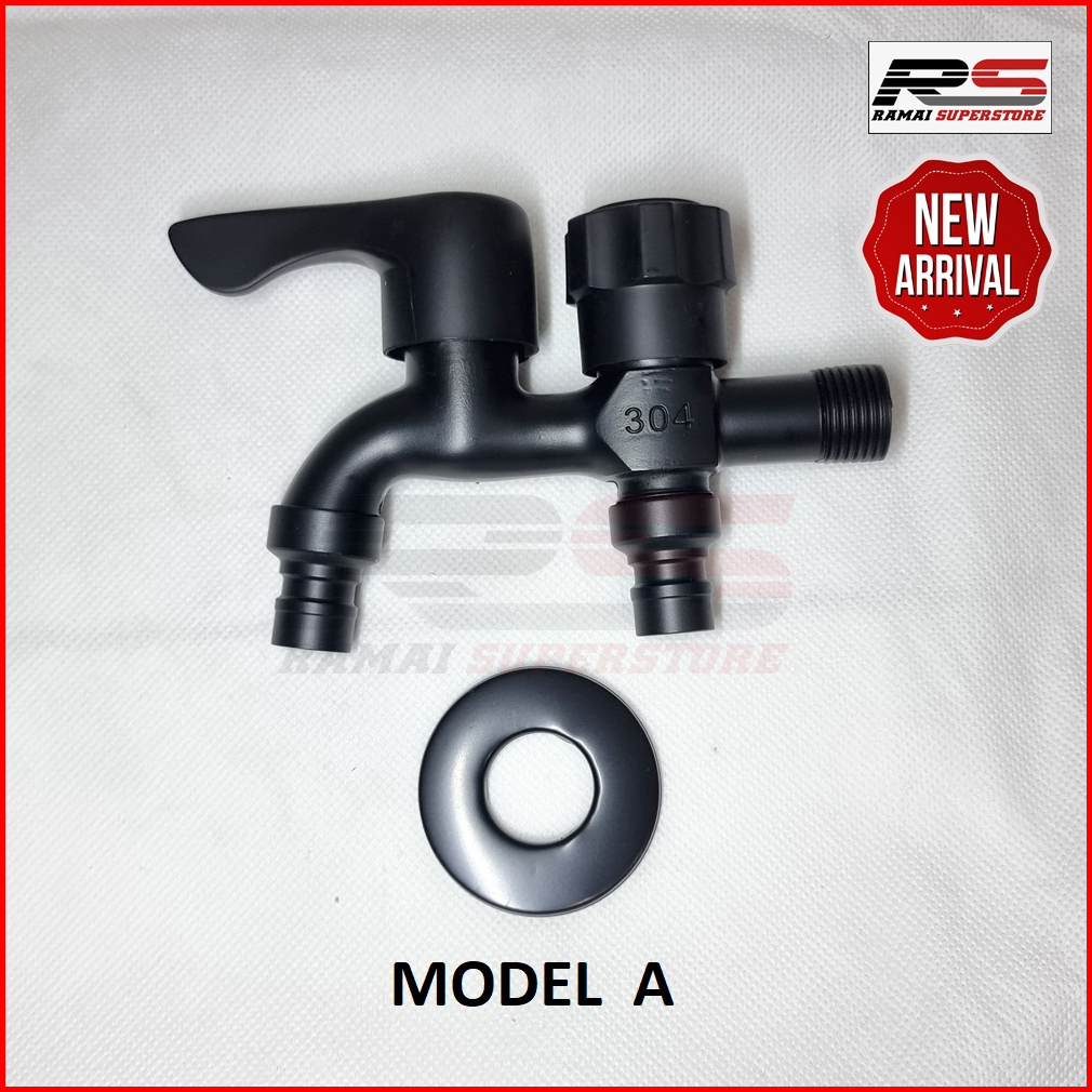 Kran Cabang Keran Shower Premium Hitam Stainless 304