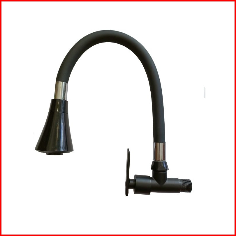 Kran Angsa Fleksibel Hitam Terompet Dinding Inci Keran Cuci Piring Kran Wastafel Kran Air