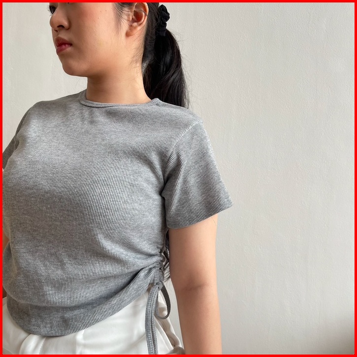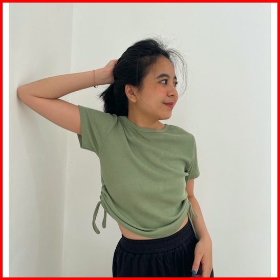 Sesil Top L Crop Top Tali Serut L Rib Knit Premium L Kamisol Wanita L Tank Top L Rajut Premium