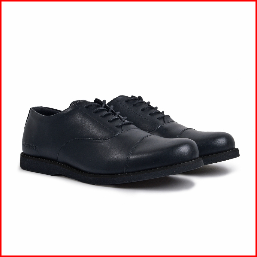Monday - Oxford Full Black Genuine Leather Sepatu Pantofel Pria