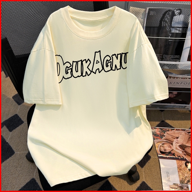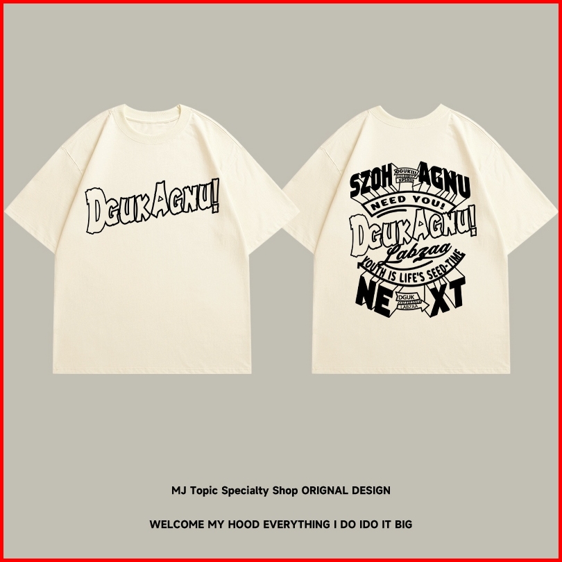 Huruf Dicetak Atasan Leher Bulat Aprikot Pria 100 Katun T-shirt Lengan Pendek Pria